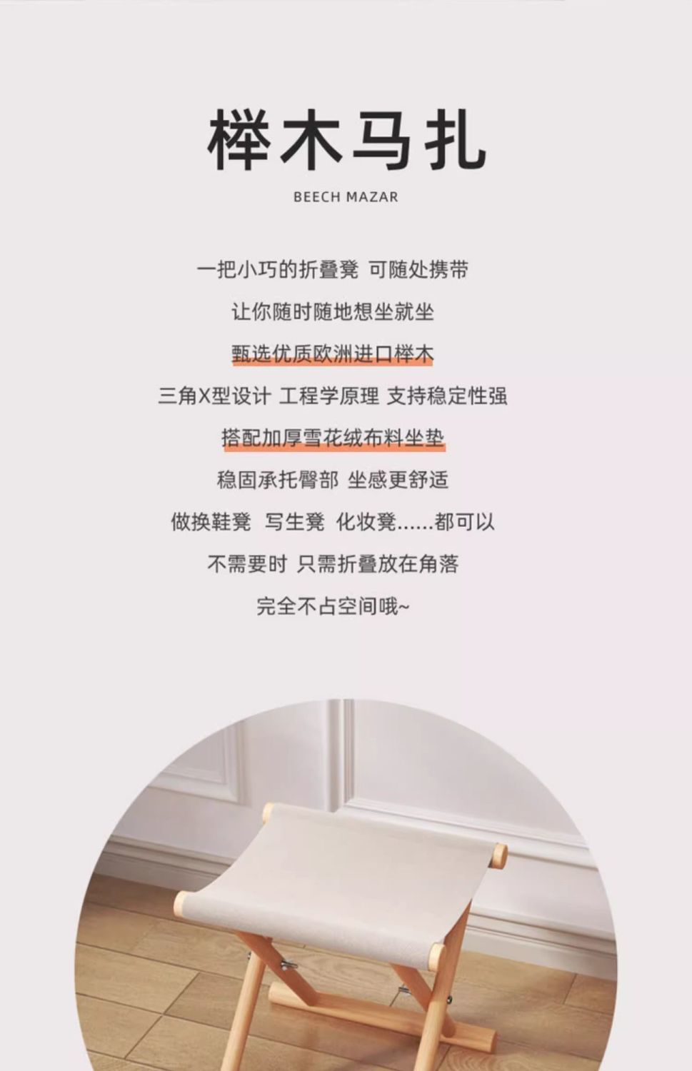 단단한 나무 Mazar 야외 휴대용 접이식 의자 라이트 럭셔리 너도밤 나무 신발 변경 의자 낚시 의자 벤치 작은 의자스토어 가기