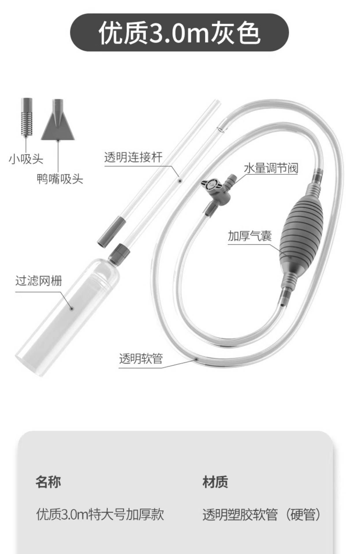 • [업그레이드 모델] 3.0m 그레이 [덕빌 + 모래 흡입 헤드]