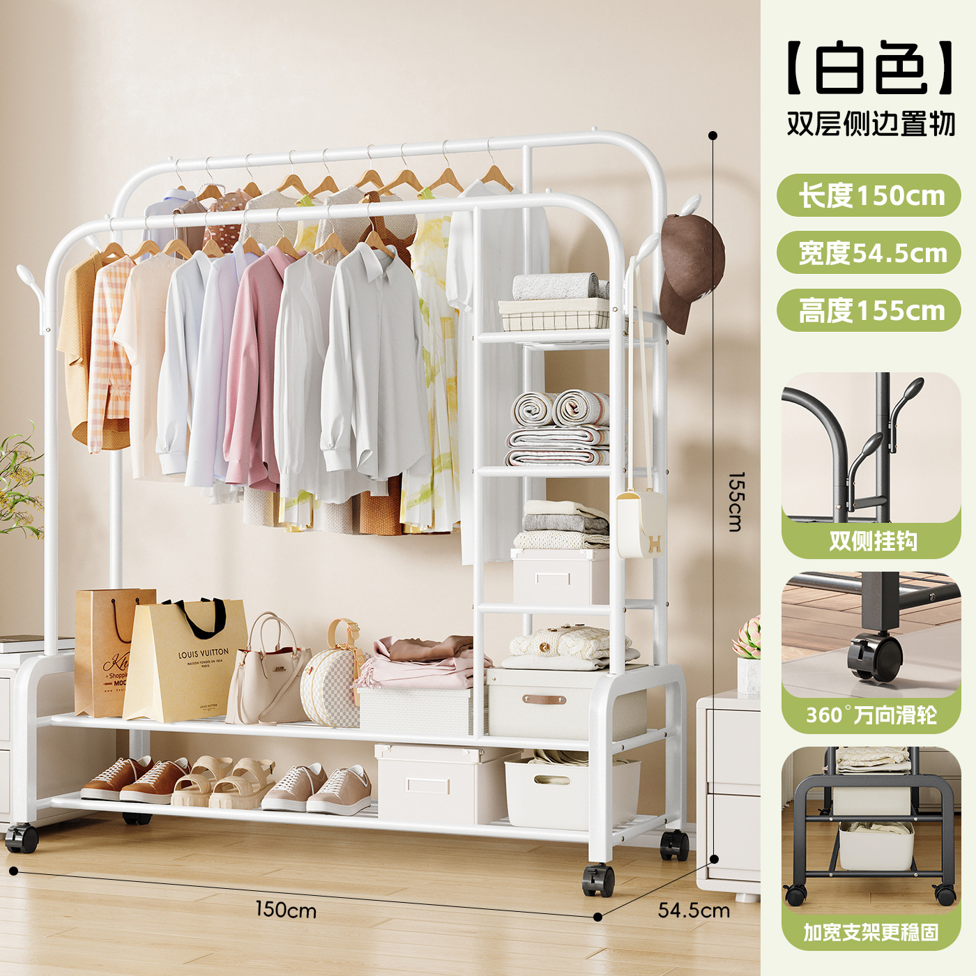 • 흰색 130 이중층 이중 극 모델 + 측면 걸이 + 휠 후크