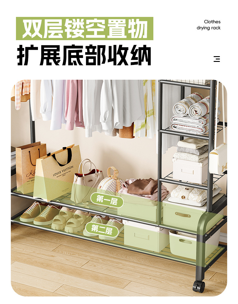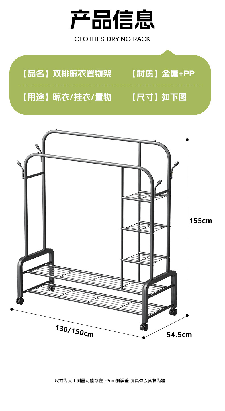 이중봉 빨래건조대 가정용 빨래건조대 바닥형 발코니 간편 스탠드형 옷걸이 빨래건조대