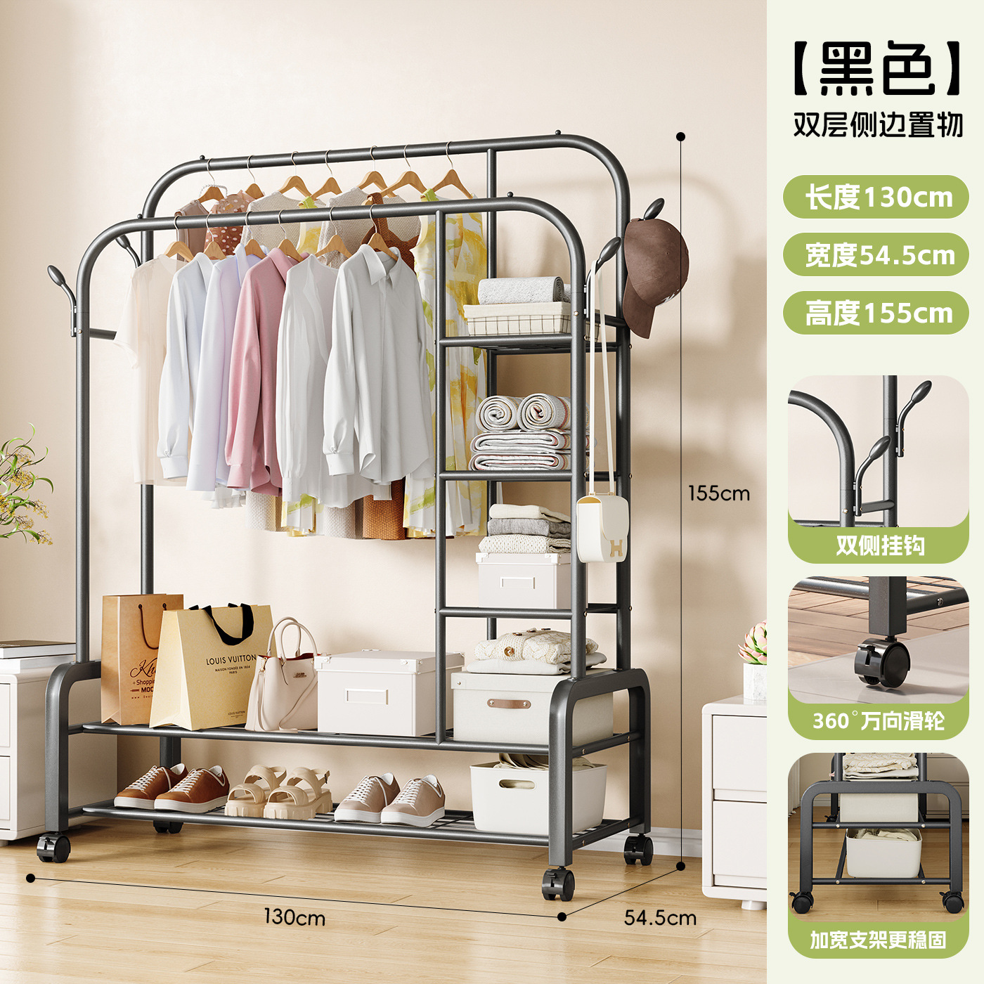 • 블랙 130 더블 레이어 더블 폴 모델 + 사이드 행잉 + 휠 후크