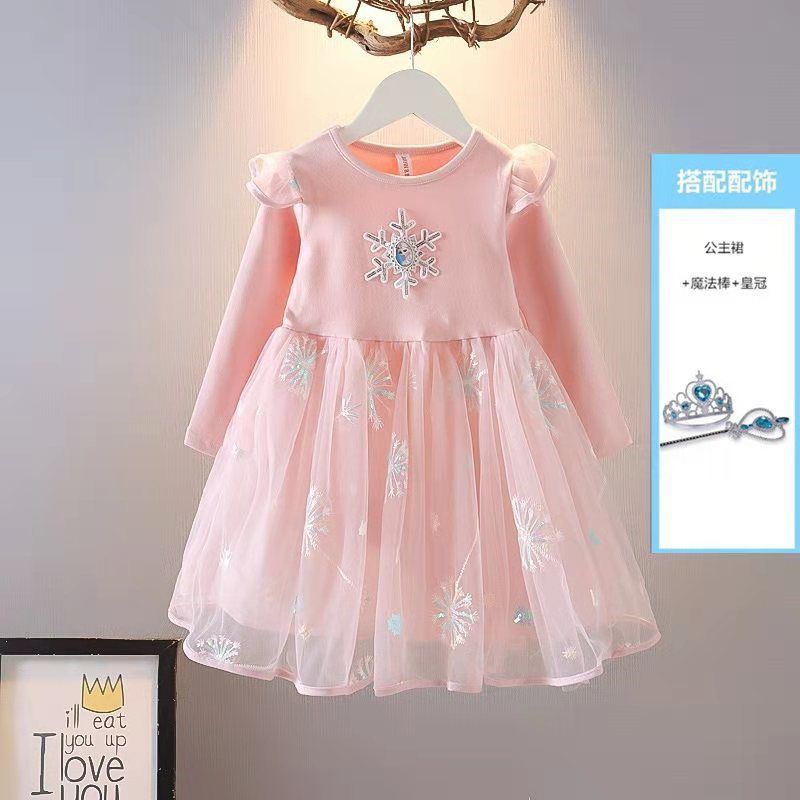 겨울왕국 아동복 소녀 엘사 공주 드레스 어린 소녀 가을 긴팔 드레스 아기 스타일 메쉬 스커트