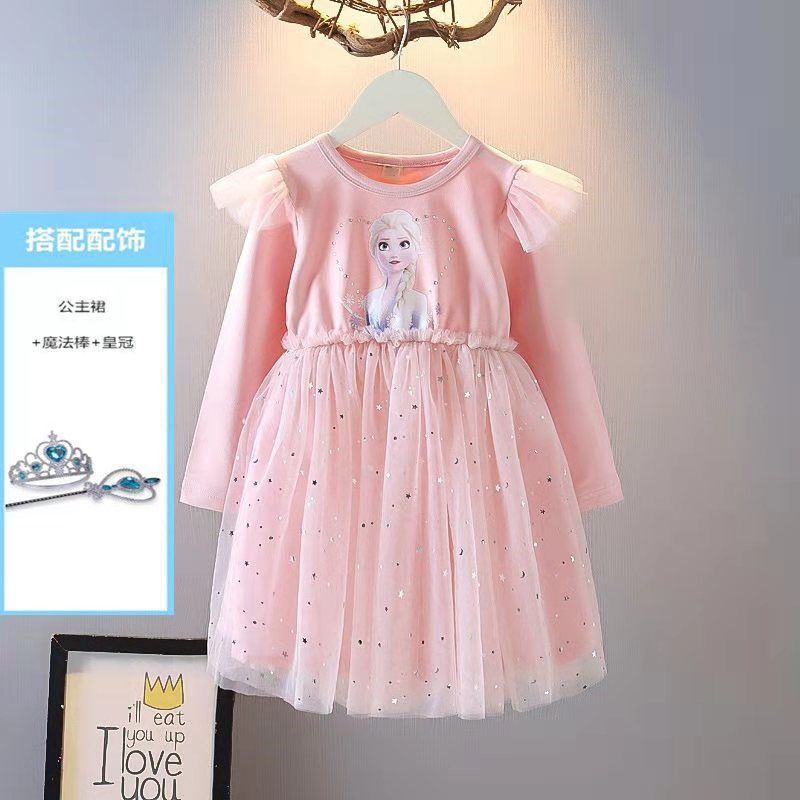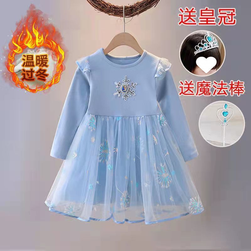 겨울왕국 아동복 소녀 엘사 공주 드레스 어린 소녀 가을 긴팔 드레스 아기 스타일 메쉬 스커트스토어 가기