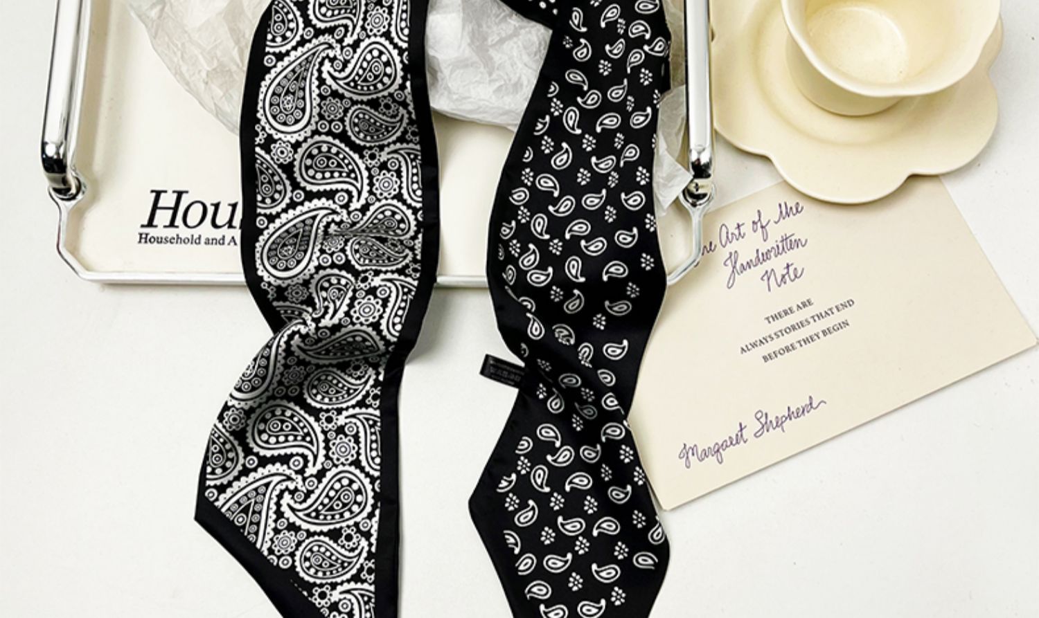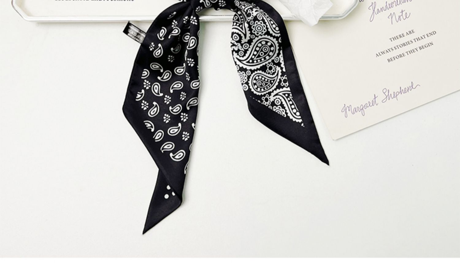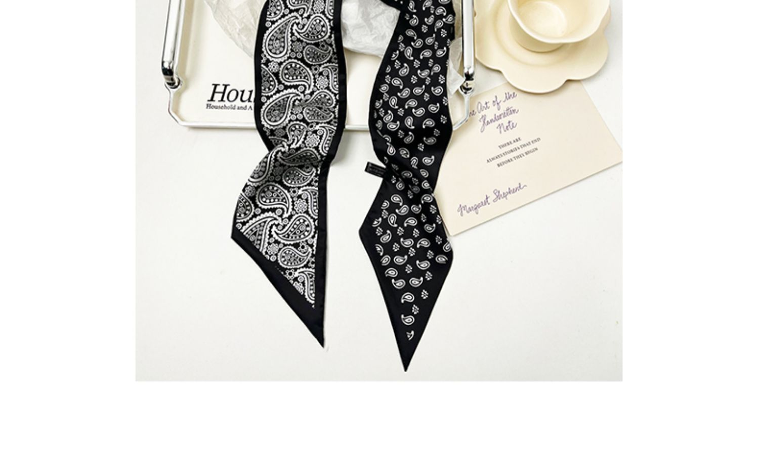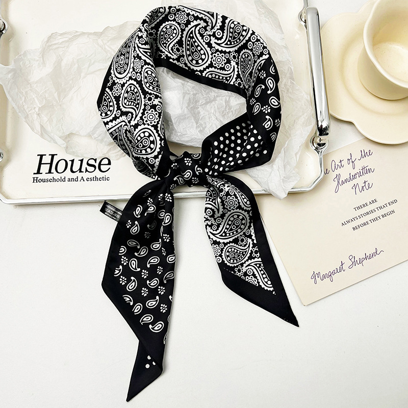 우아한 레트로 블랙 캐슈 롱 스트립 장식 작은 스카프 올 매치 봄과 여름 헤어 밴드 여성의 봄과 가을 스카프 얇은 스카프스토어 가기
