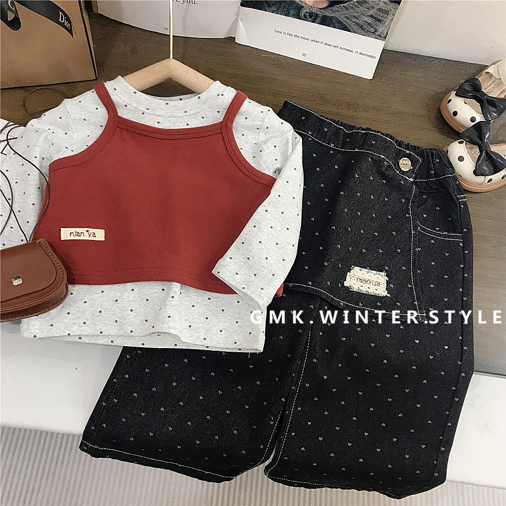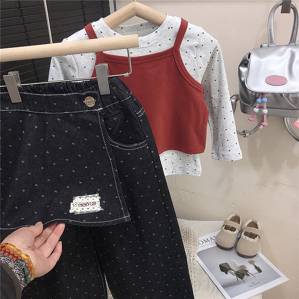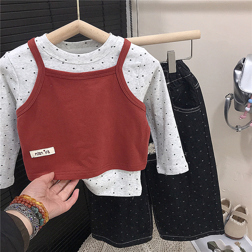 어린이 의류 소녀 봄 새로운 세트 어린이 서양식 캐미솔 긴팔 탑 청바지 트렌디 한 대외 무역스토어 가기