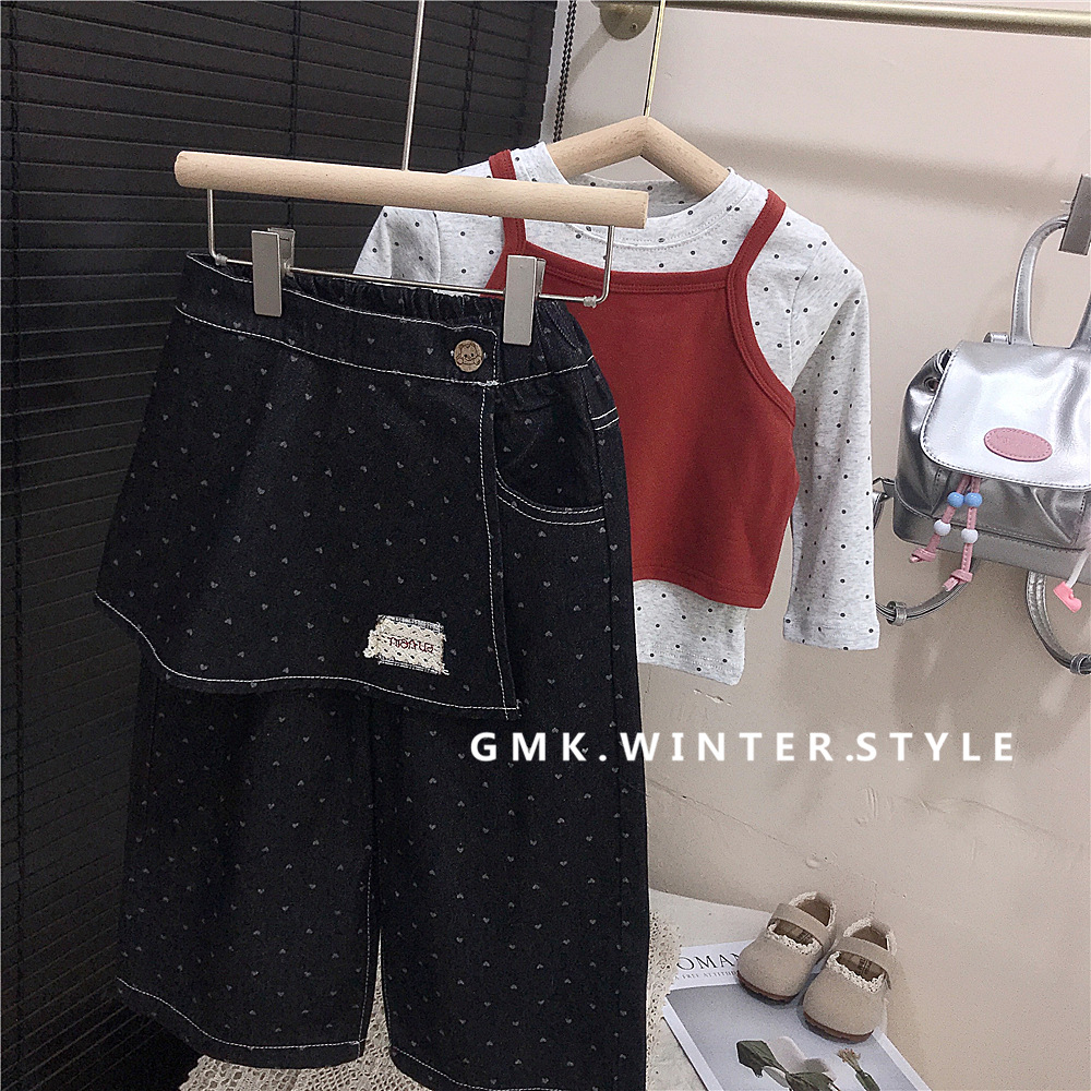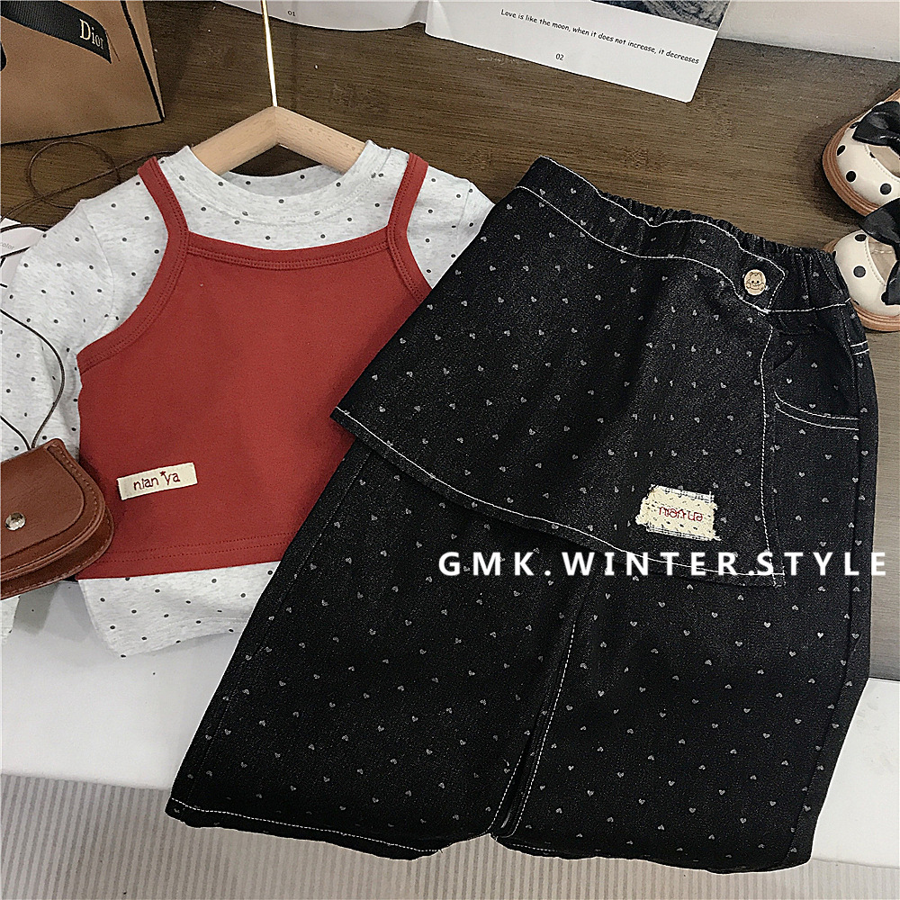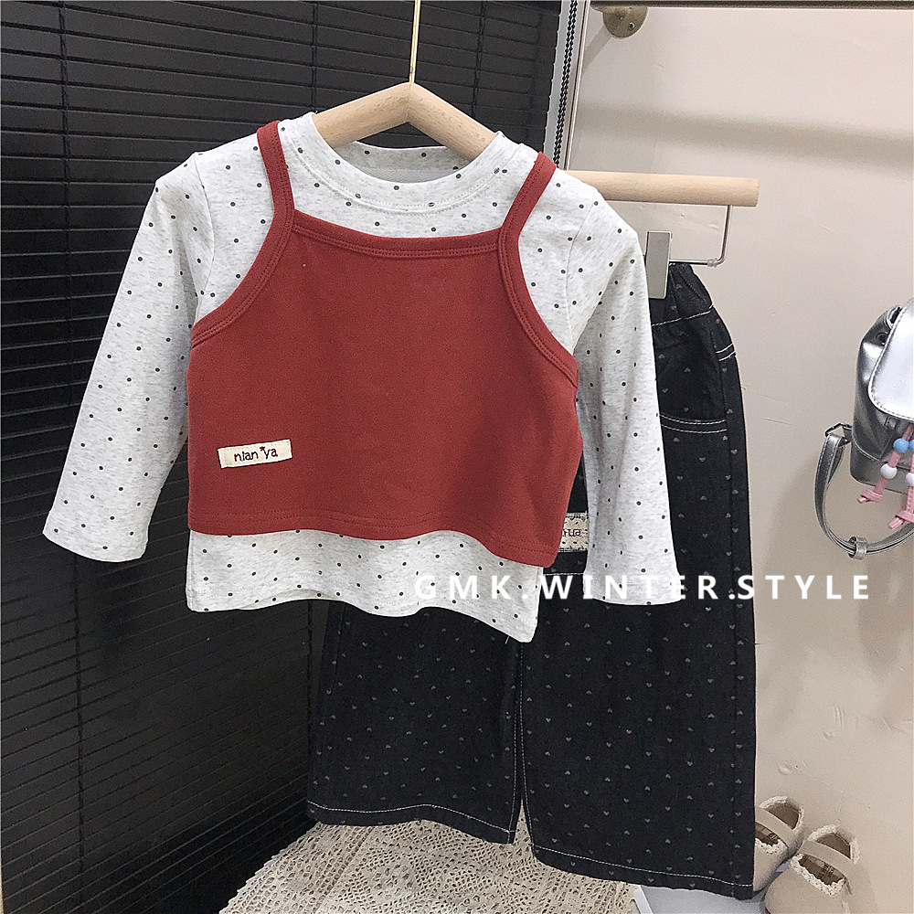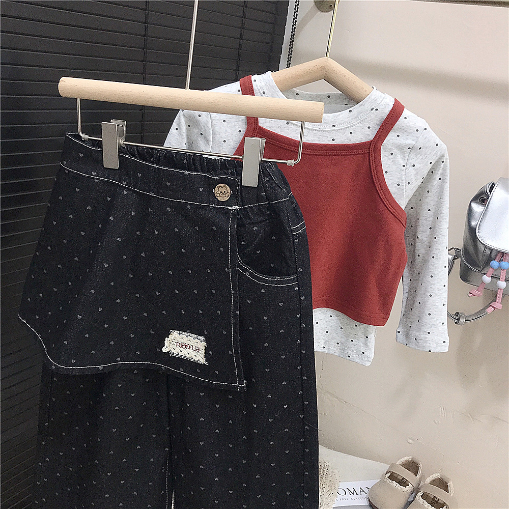 어린이 의류 소녀 봄 새로운 세트 어린이 서양식 캐미솔 긴팔 탑 청바지 트렌디 한 대외 무역스토어 가기
