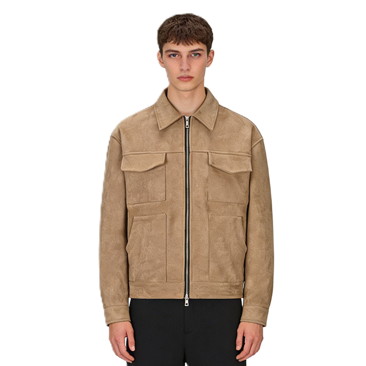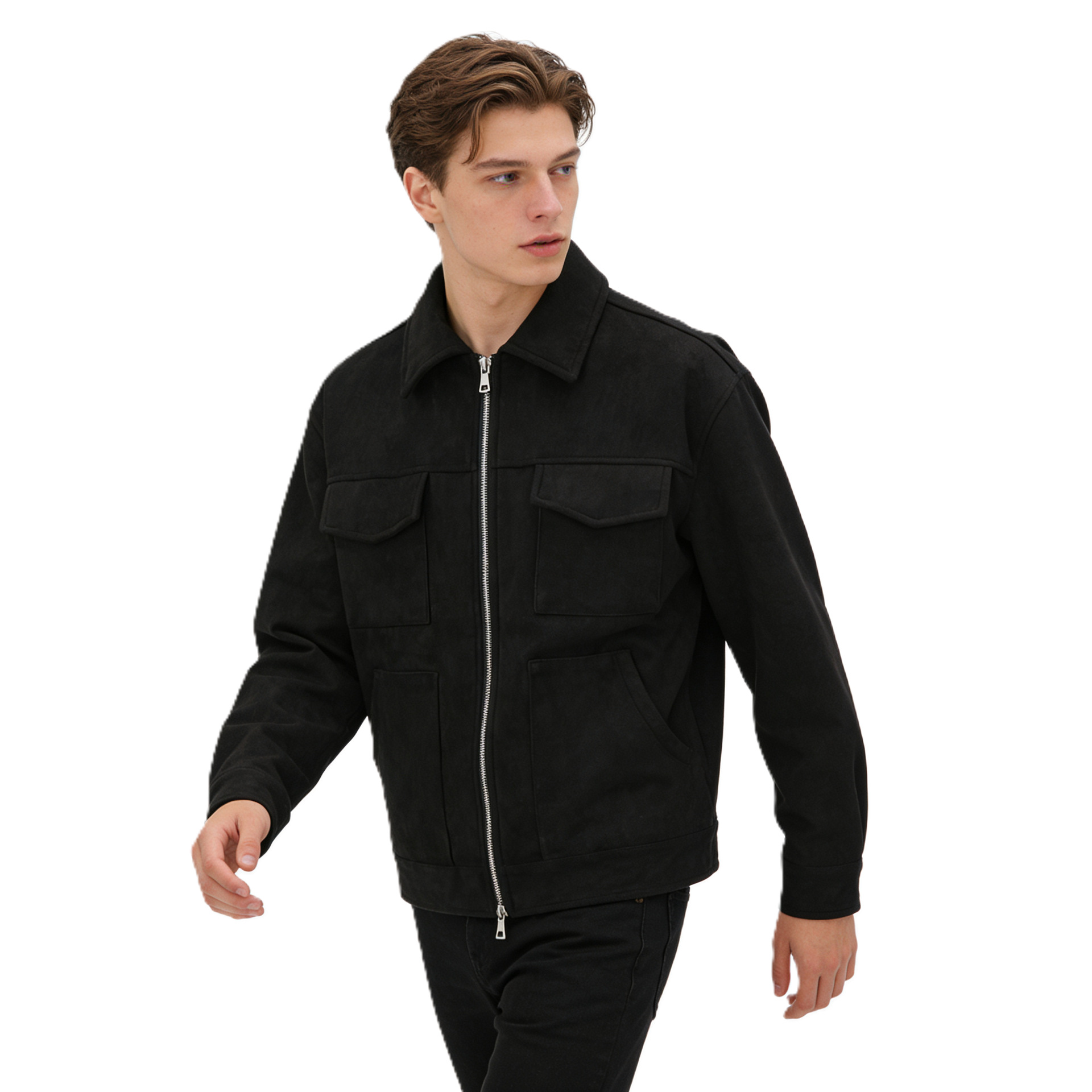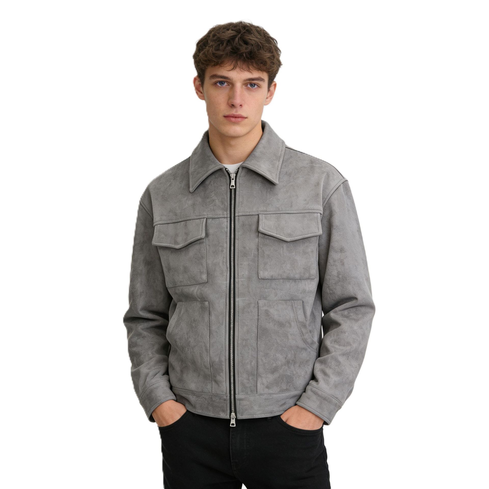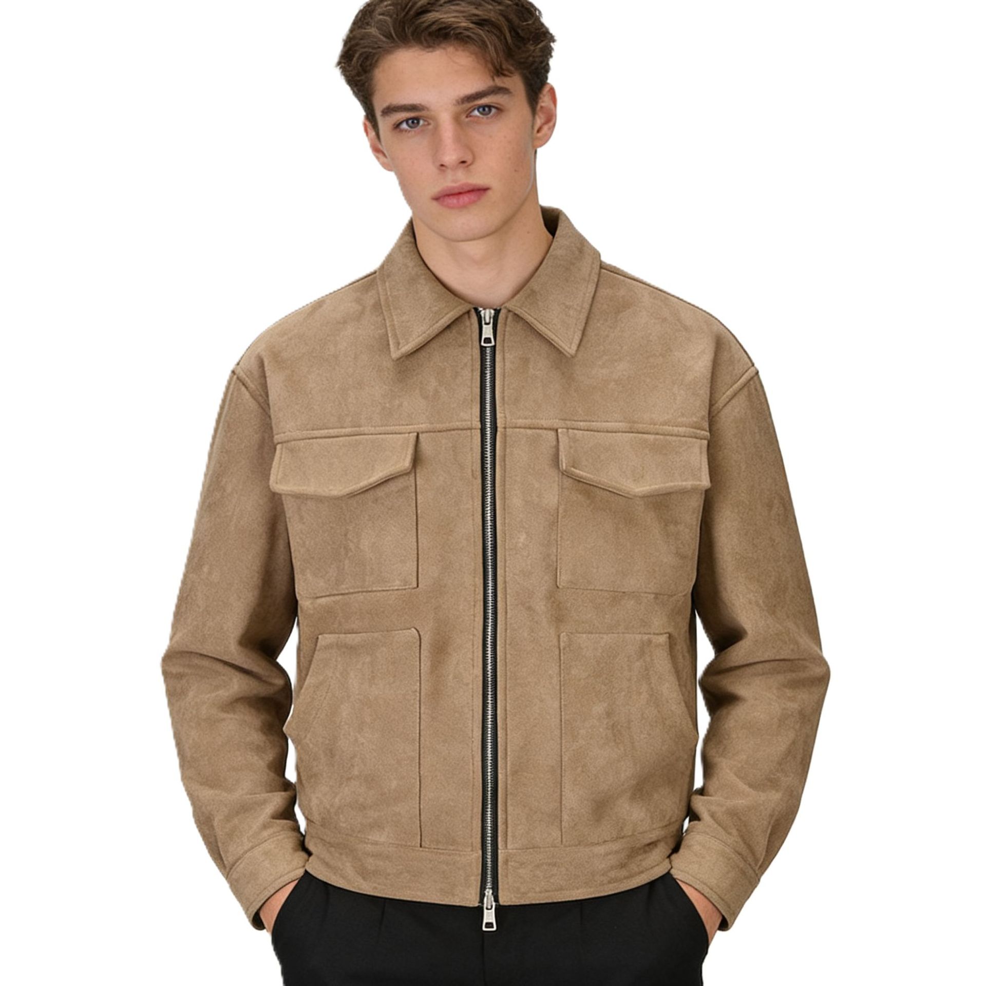 유럽과 미국의 국경 간 남성 트렌디 자켓 스웨이드 남성 지퍼 대형 포켓 캐주얼 라펠 봄, 가을 자켓 남성