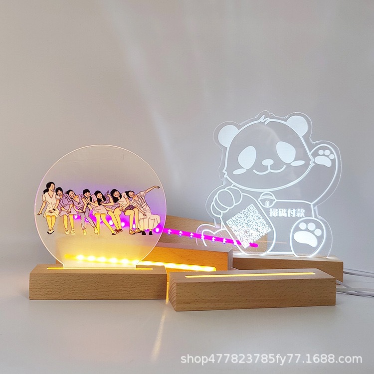 인터넷 연예인 직사각형 메시지 보드 유리 그림 망치 그림 다채로운 빛나는 기본 야간 조명 충전식 LED 조명 장식품