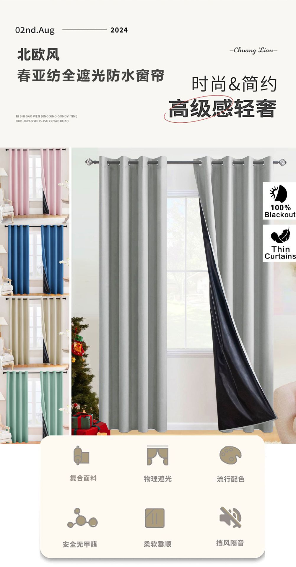 Chunya 섬유 코팅 국경 대외 무역 커튼 전체 음영 아마존 테무 폭발 방수 단색 단열 커튼 완제품스토어 가기