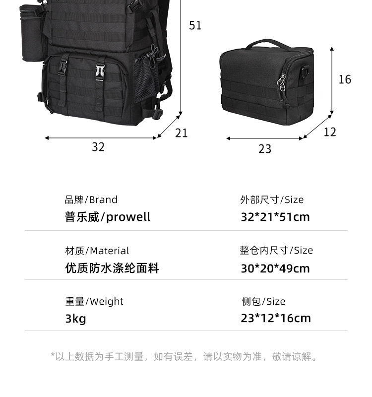 Ploewe 카메라 가방 사진 가방 30L 전술 배낭 야외 배낭 하이킹 가방 배낭스토어 가기