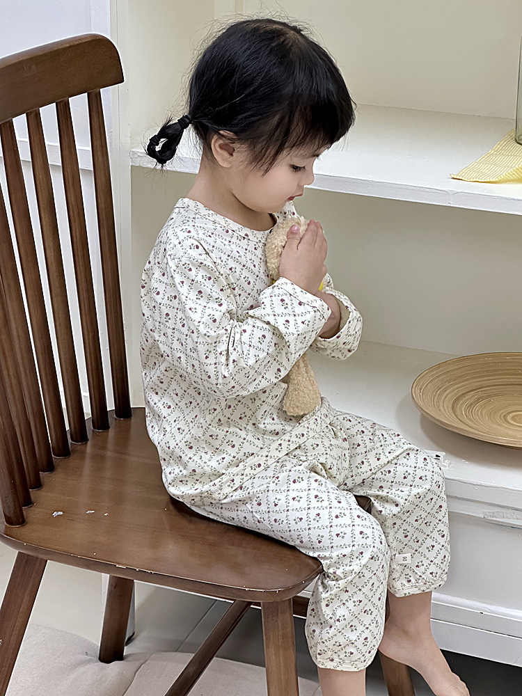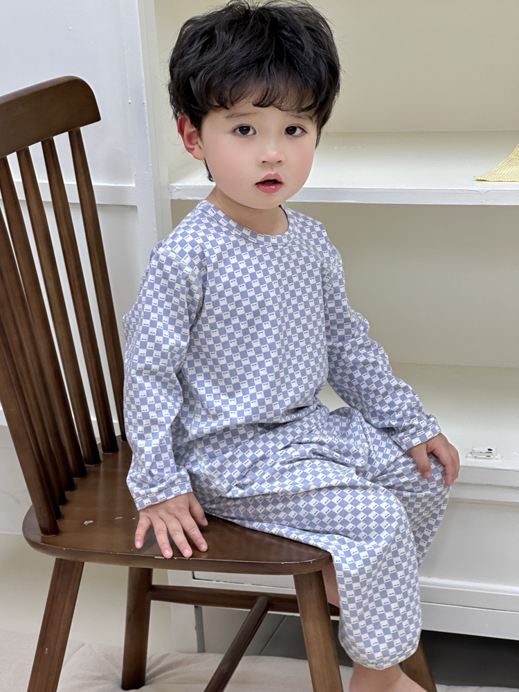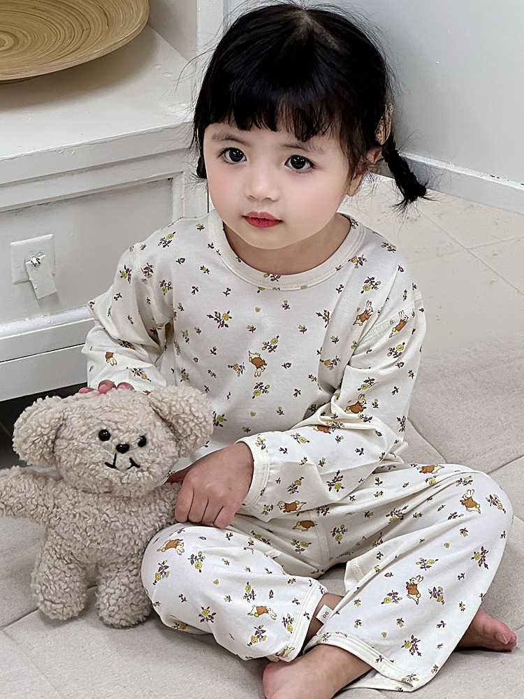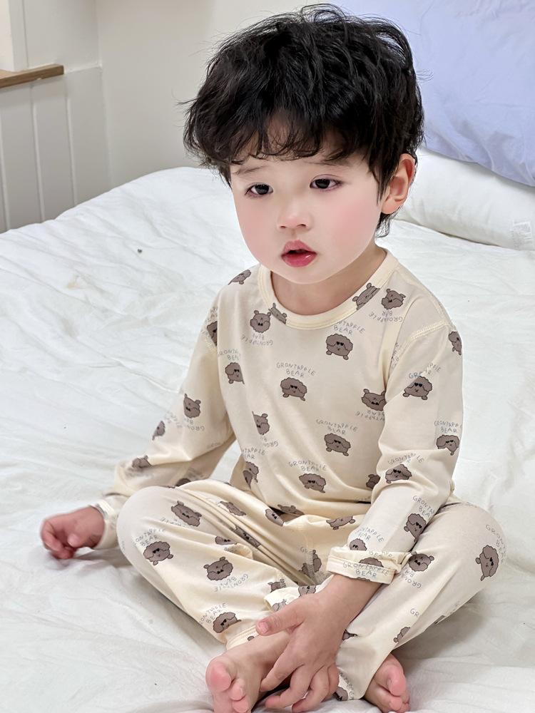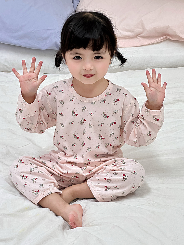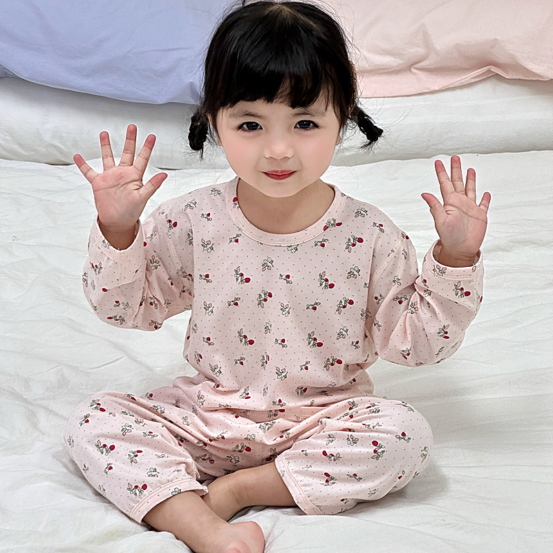 봄과 여름 아기 잠옷 세트 어린이 가정 옷 Youkosi 소년과 소녀 긴 소매 에어컨 클래스 A 얇은