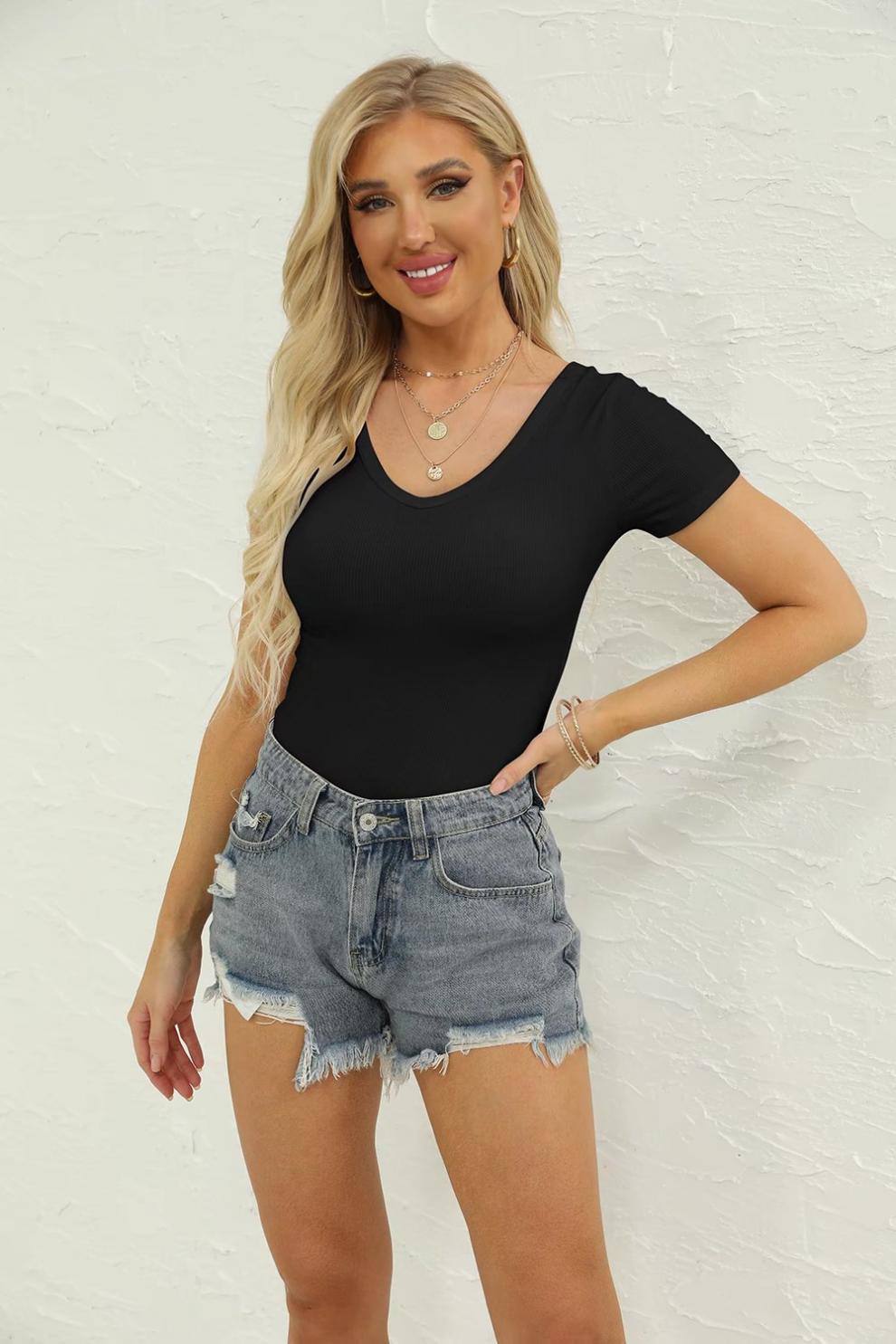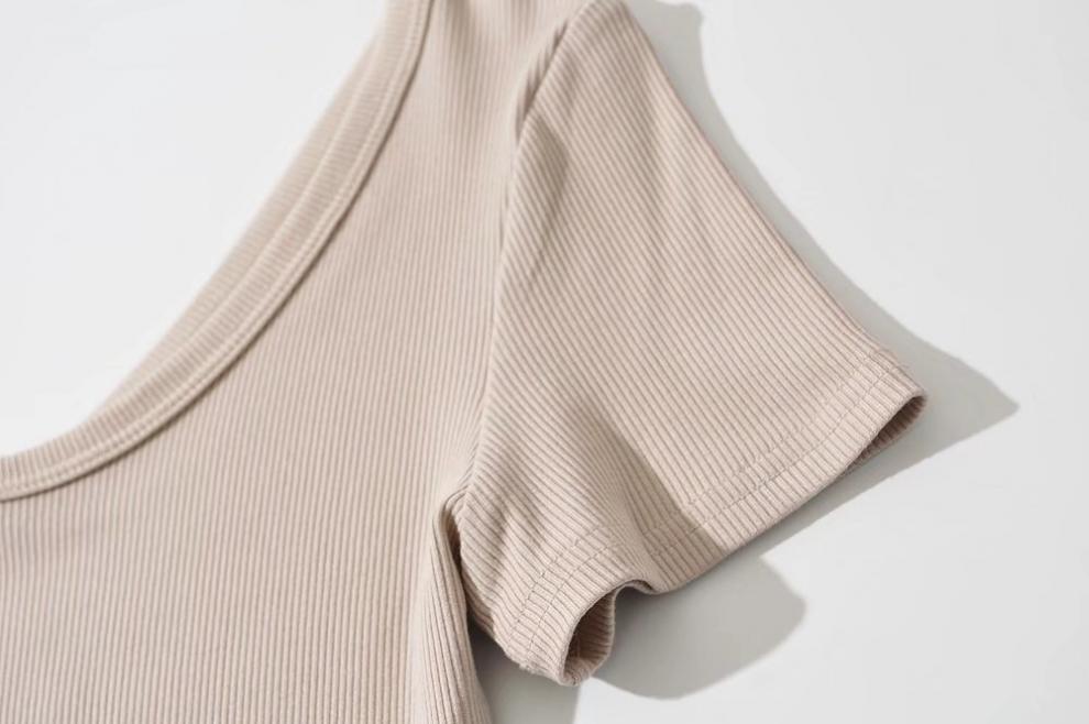 디자인 센스 반팔 점프 수트 여성 여름 탄성 슬림 핏 Bottoming 유럽과 미국 아우터 입고 올 매치 탑 봄과 가을 패션스토어 가기