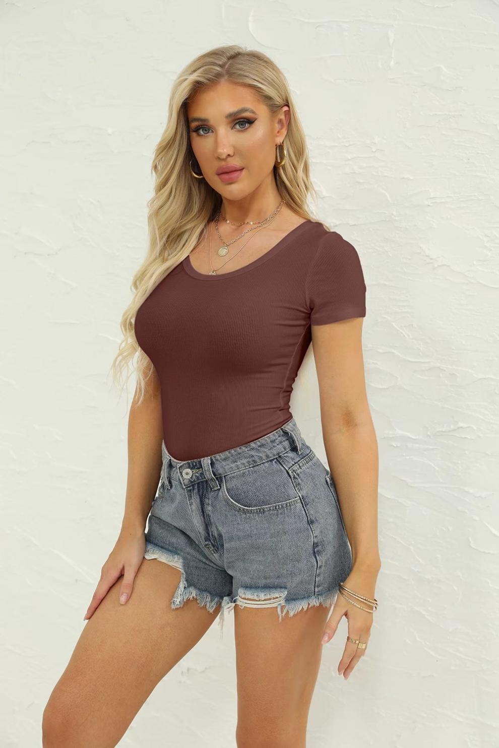 디자인 센스 반팔 점프 수트 여성 여름 탄성 슬림 핏 Bottoming 유럽과 미국 아우터 입고 올 매치 탑 봄과 가을 패션