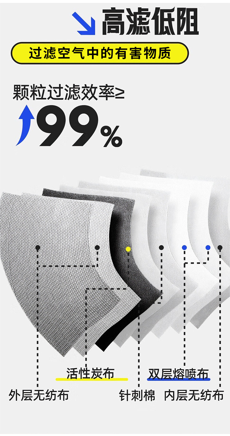 • 밸브가 없는 회색 8층 (활성탄 + 스펀지 스트립 + 독립 포장)