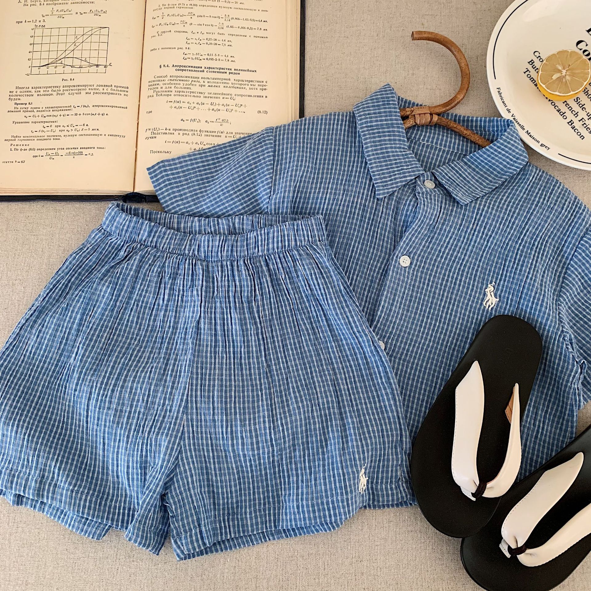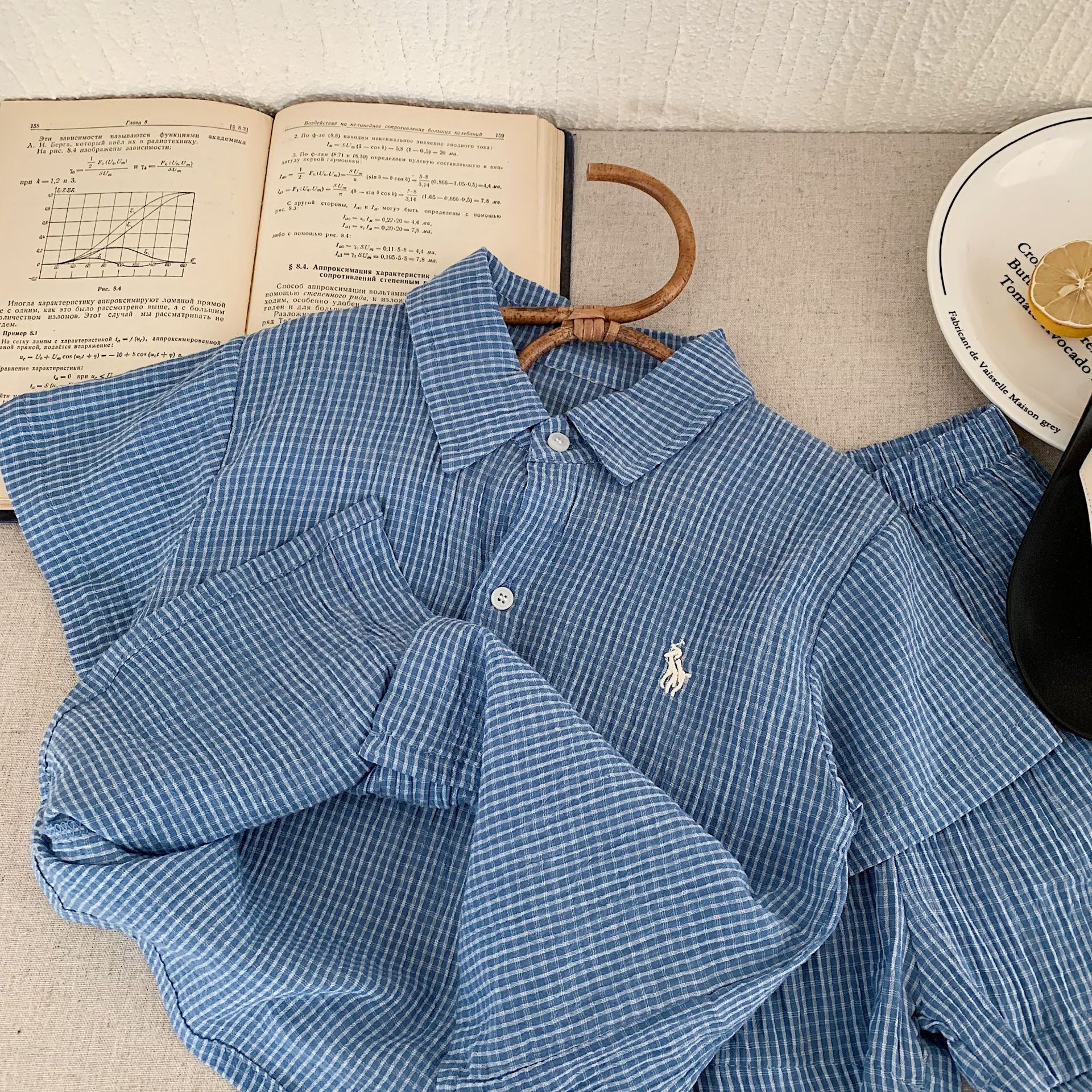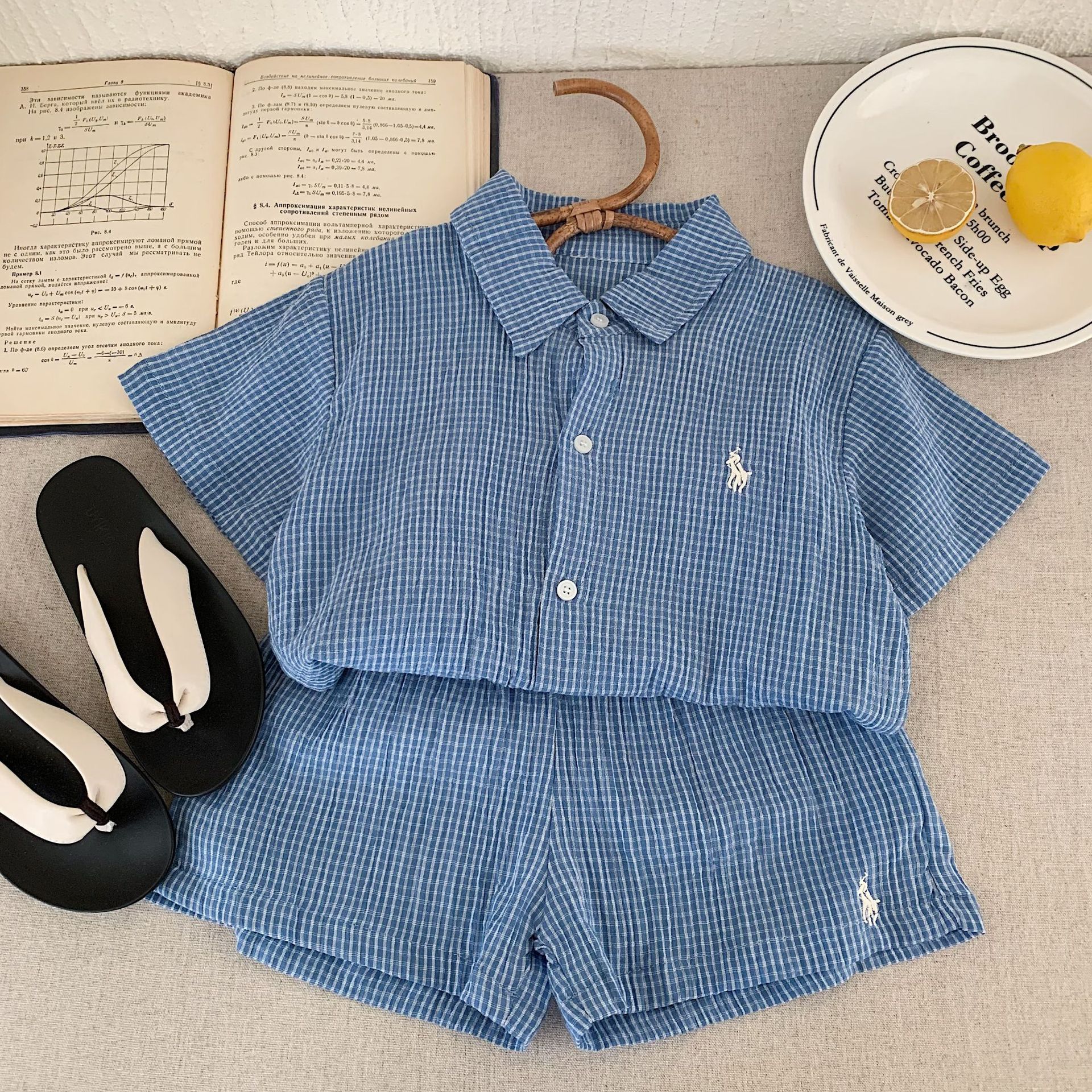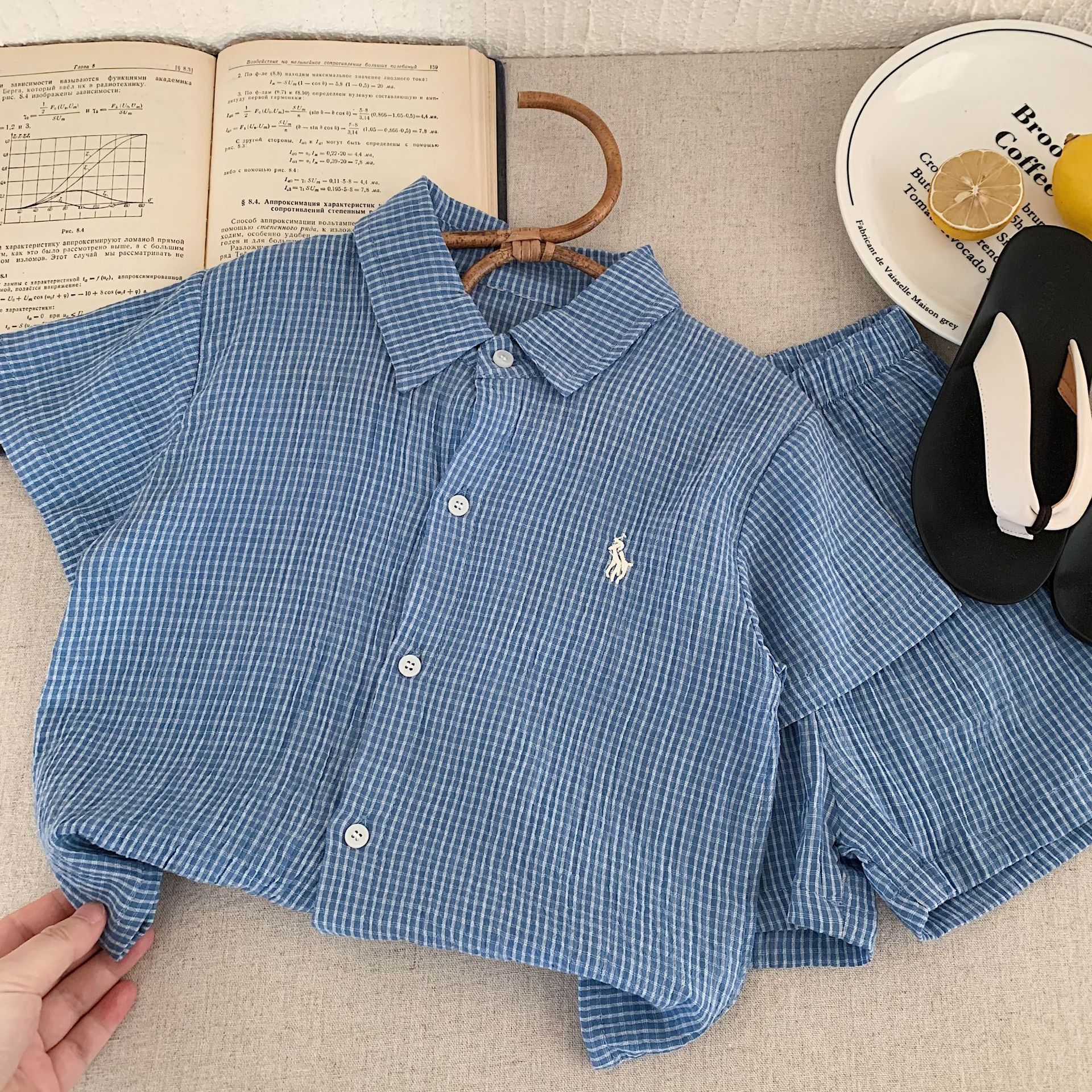 어린이 세트 2025 천 설탕 여름 새 소년과 소녀 자수 격자 무늬 세트 셔츠 투피스 유행 세트스토어 가기