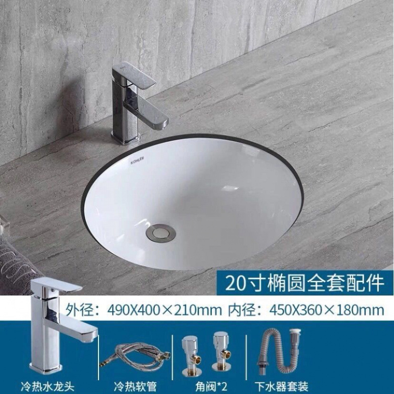 • %* 20inch 타원형 싱글 세면대 + 배수구 + 수도꼭지 전체 세트 --- Fengyi 공장