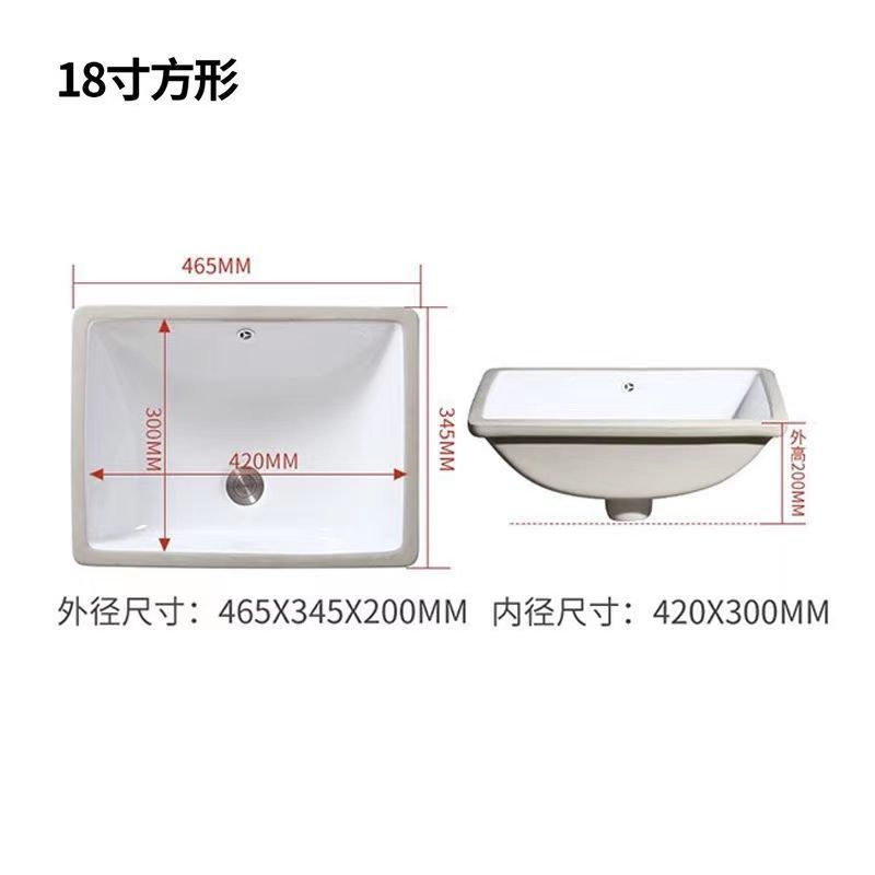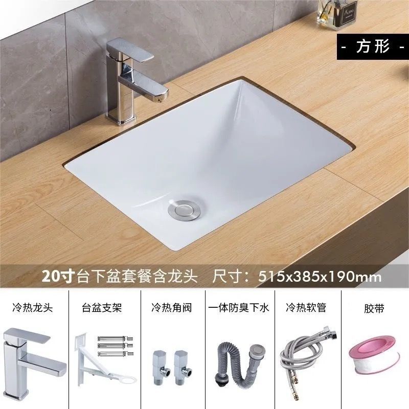 세라믹 언더싱크 세면대 사각형 타원형 내장형 가정용 세면대 욕실 카운터탑 세면대스토어 가기