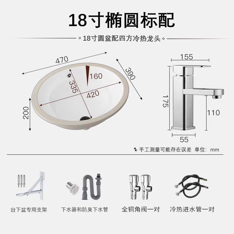 • %* 18inch 타원형 - 단일 세면대 + 배수구 + 브래킷 + 수도꼭지 전체 세트 --- Fengyi 공장