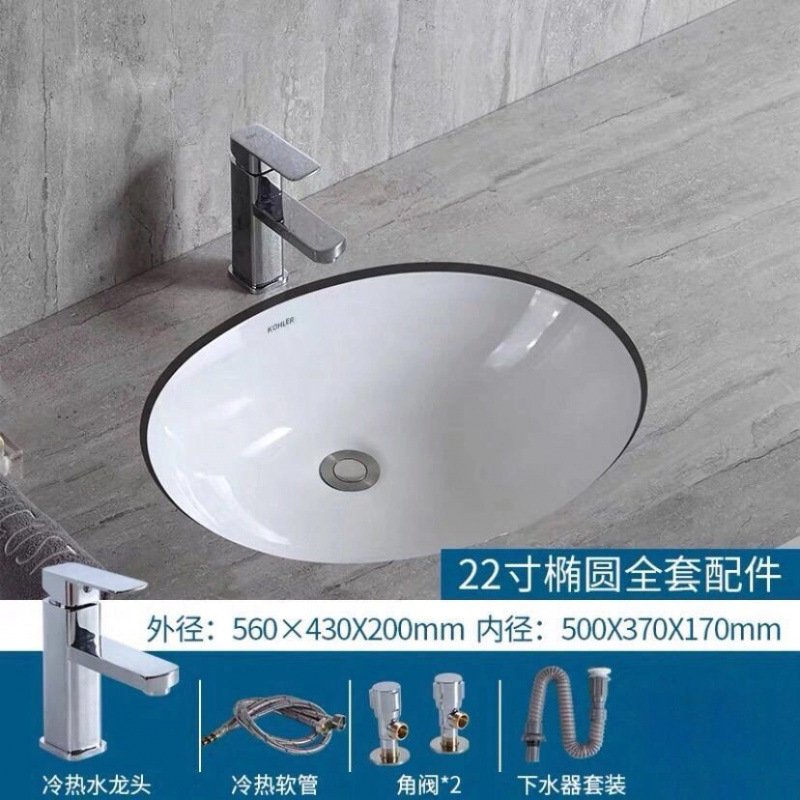 • %* 22inch 타원형 싱글 세면대 + 배수구 + 수도꼭지 전체 세트 --- Fengyi 공장