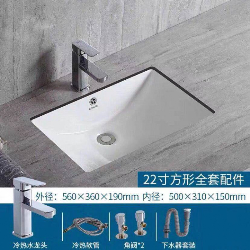 • %* 22inch 직사각형 싱글 세면대 + 배수구 + 수도꼭지 전체 세트 --- Fengyi 공장