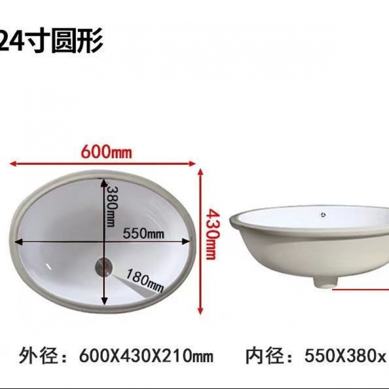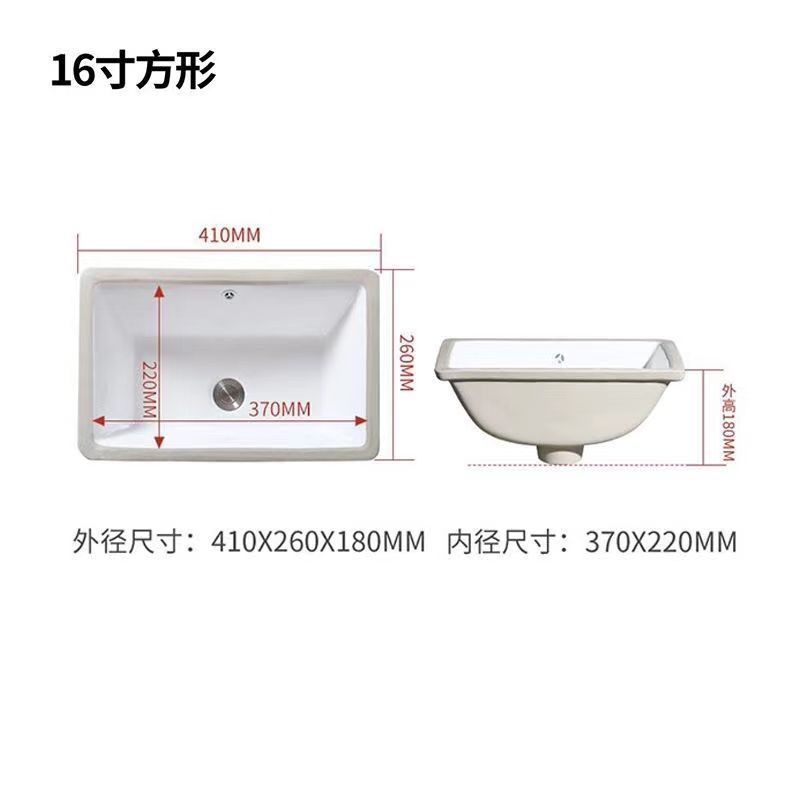 세라믹 언더싱크 세면대 사각형 타원형 내장형 가정용 세면대 욕실 카운터탑 세면대