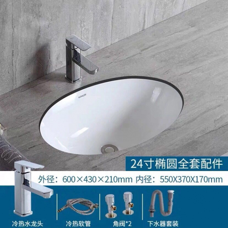 • %* 24inch 타원형 싱글 세면대 + 배수구 + 수도꼭지 전체 세트 --- Fengyi 공장