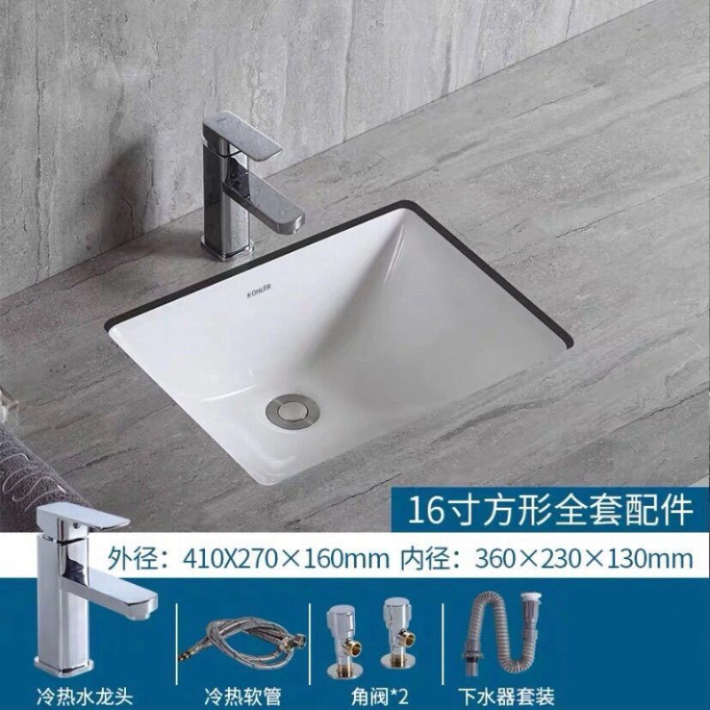 • %* 16inch 직사각형 싱글 세면대 + 배수구 + 수도꼭지 전체 세트 --- Fengyi 공장