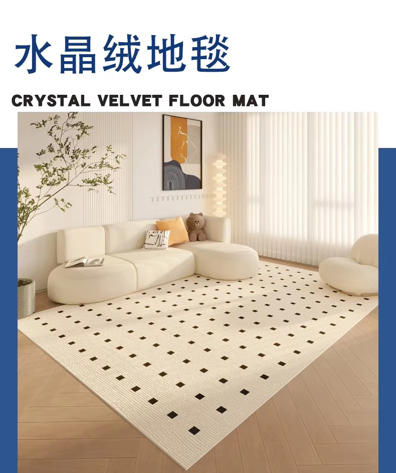 간단한 사각형 거실 카펫 얼룩에 강하고 전체 스프레드 크리스탈 벨벳 카펫 침실 커피 테이블 바닥 매트 머리카락 세대스토어 가기