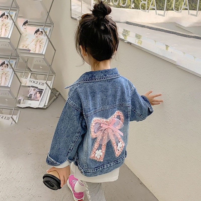 여아 봄 데님 재킷 2025 새로운 스타일 한국 스타일 유행 상의 중대형 아동용 인기 재킷