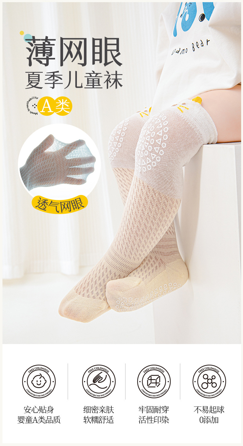 유아 및 아동용 양말 봄 여름 얇은 A급 면 고탄성 메쉬 종아리 통기성 뼈없는 긴 모기 방지 양말