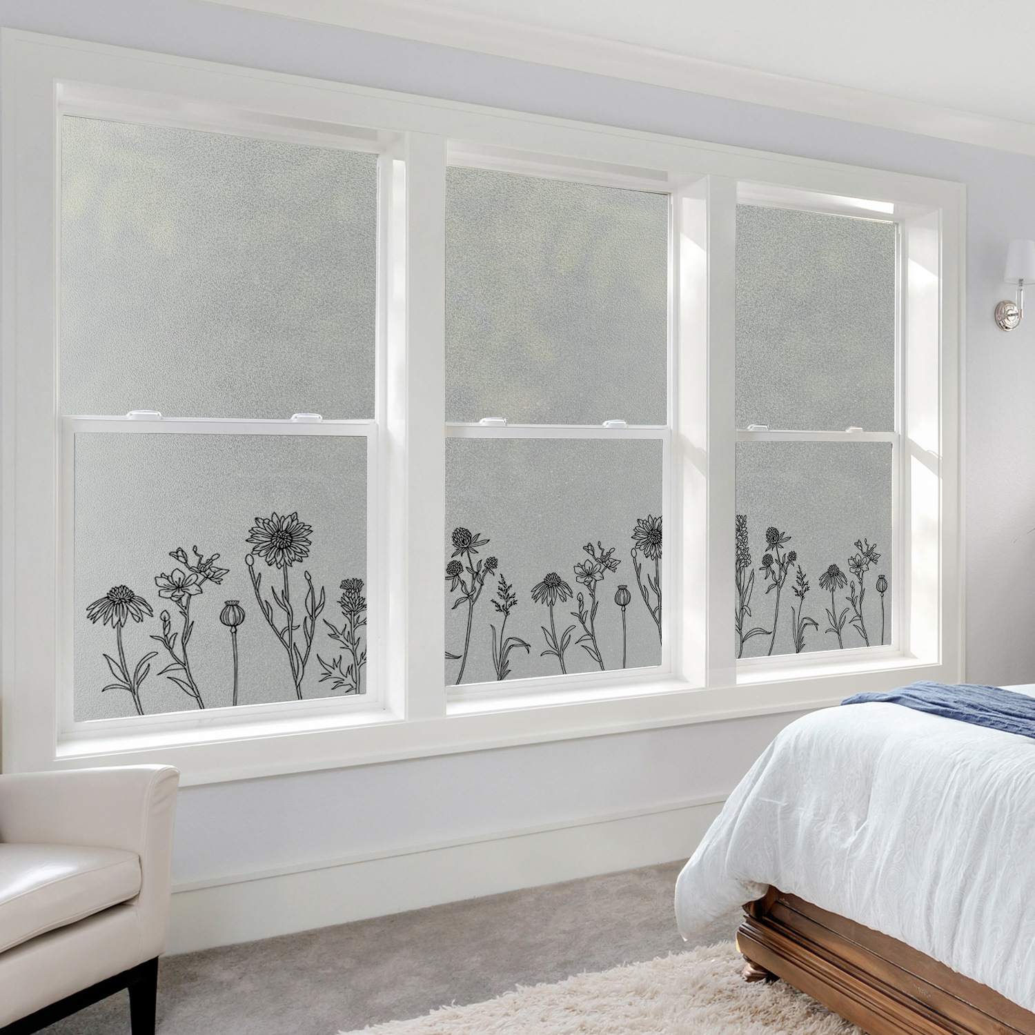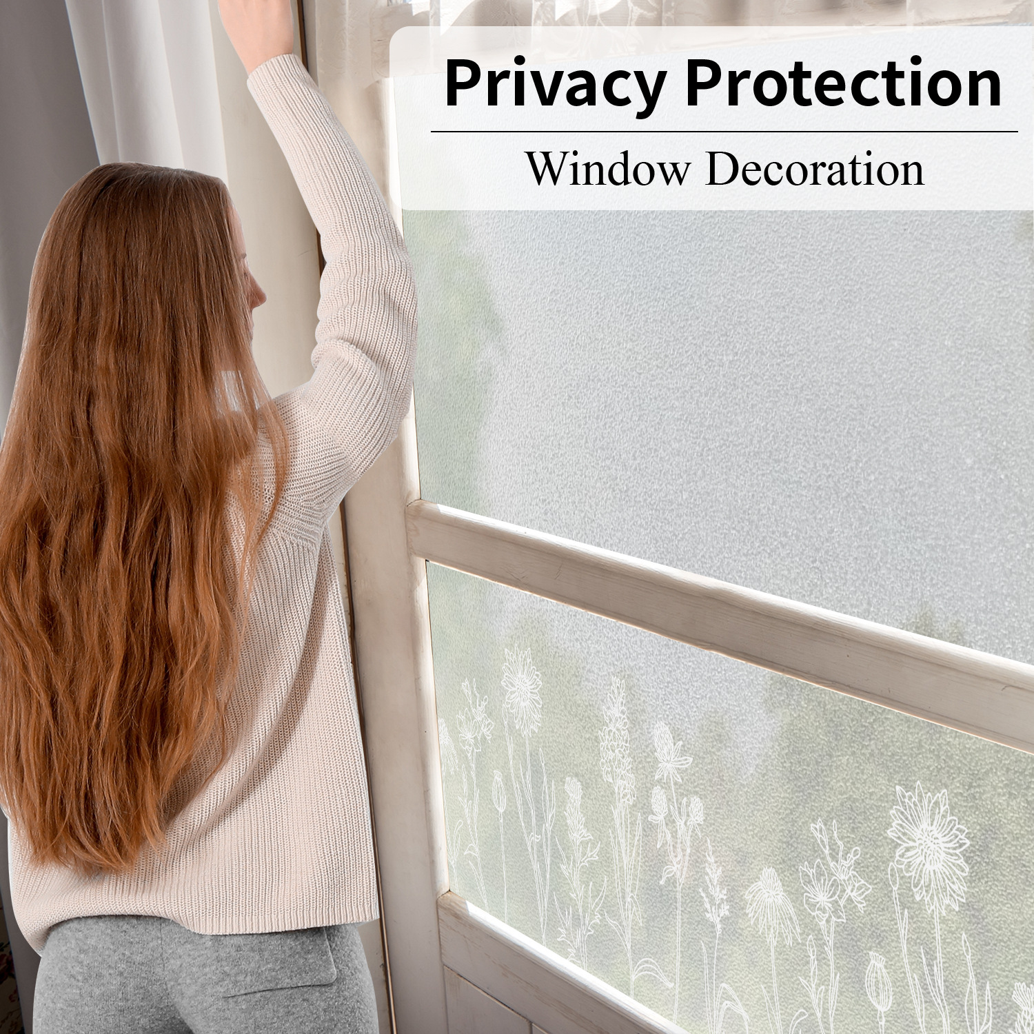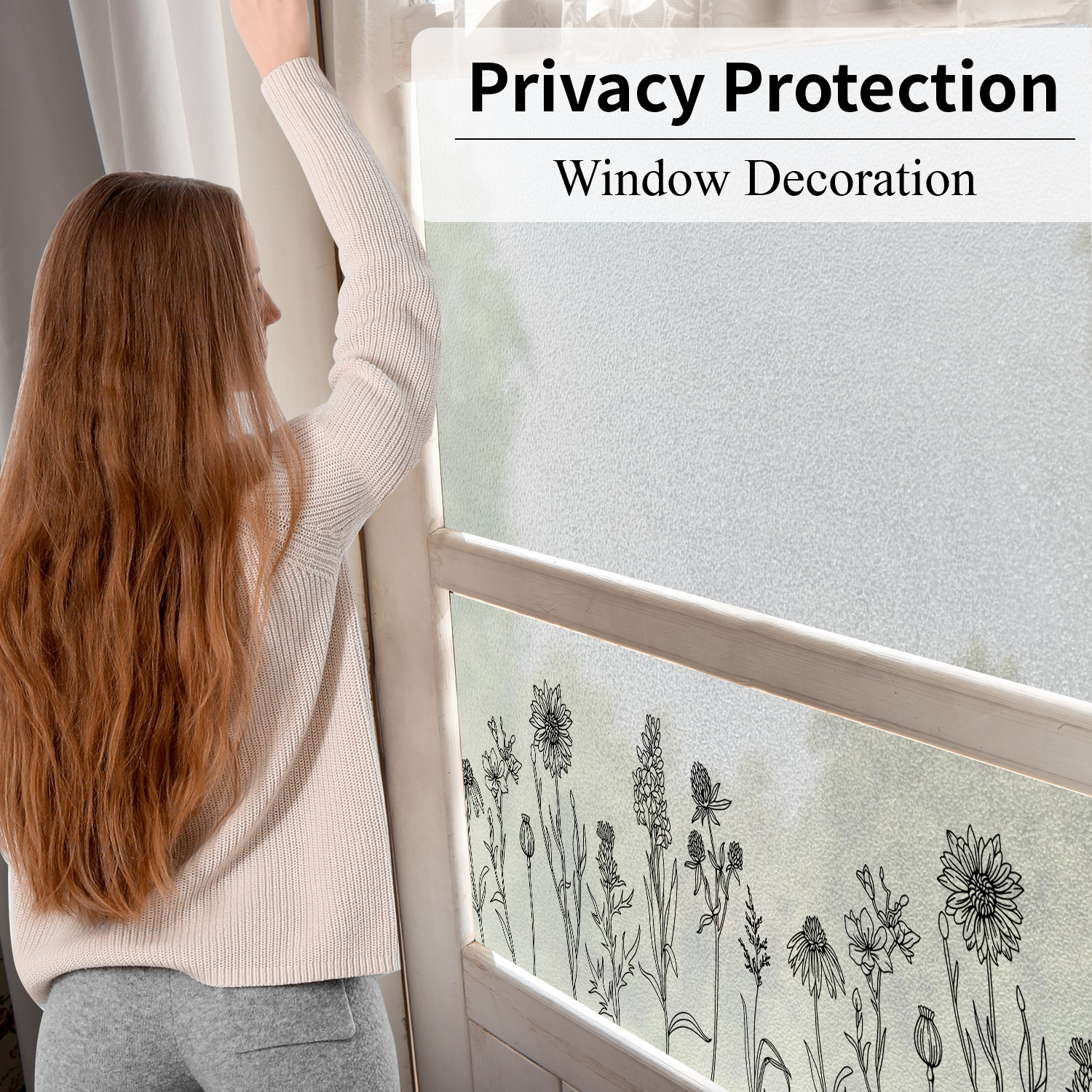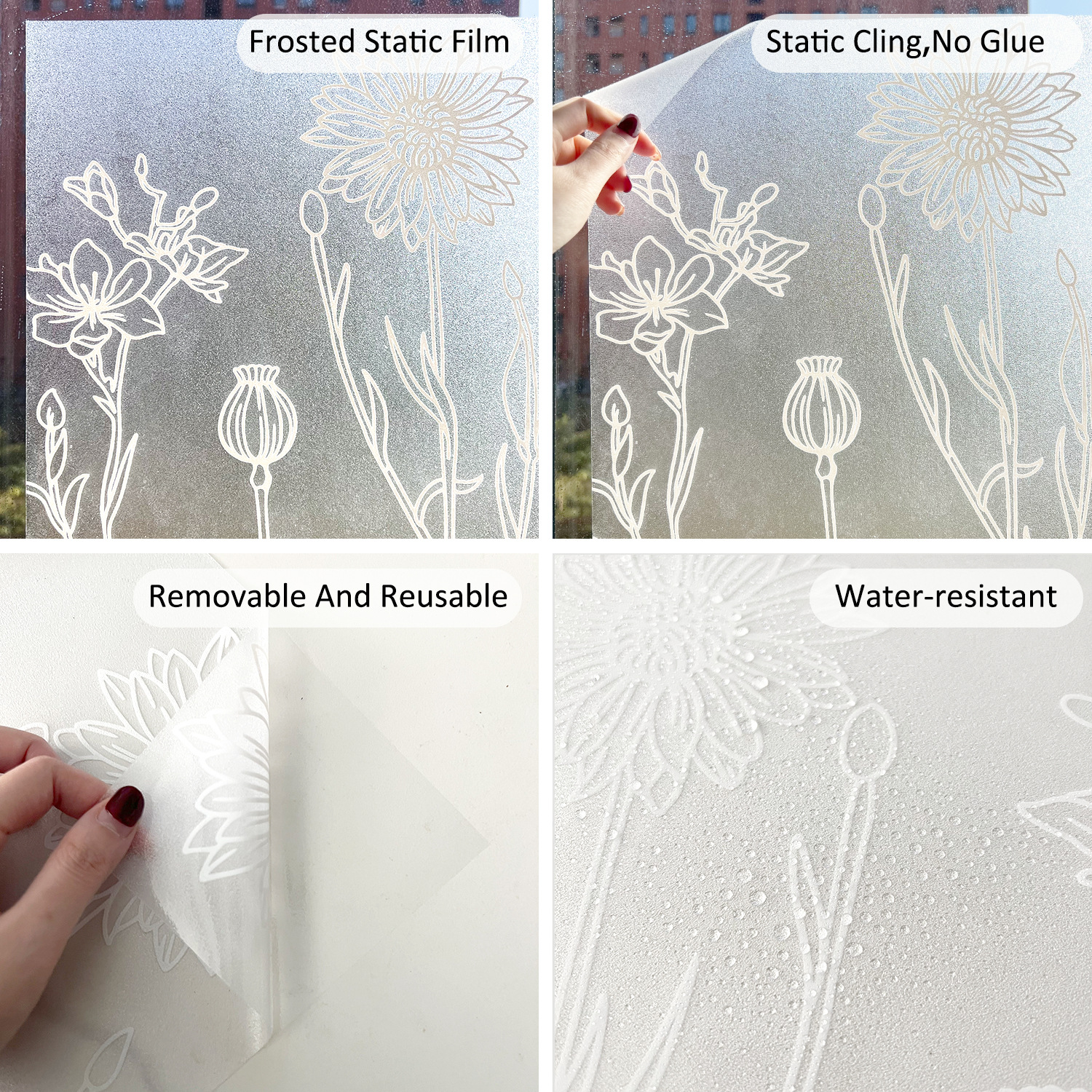 Funlife2025 신제품 정전기 필름 말린 꽃 해바라기 베드룸 창 유리 엿보기 방지 접착제가 없는 창 필름 SE1224스토어 가기