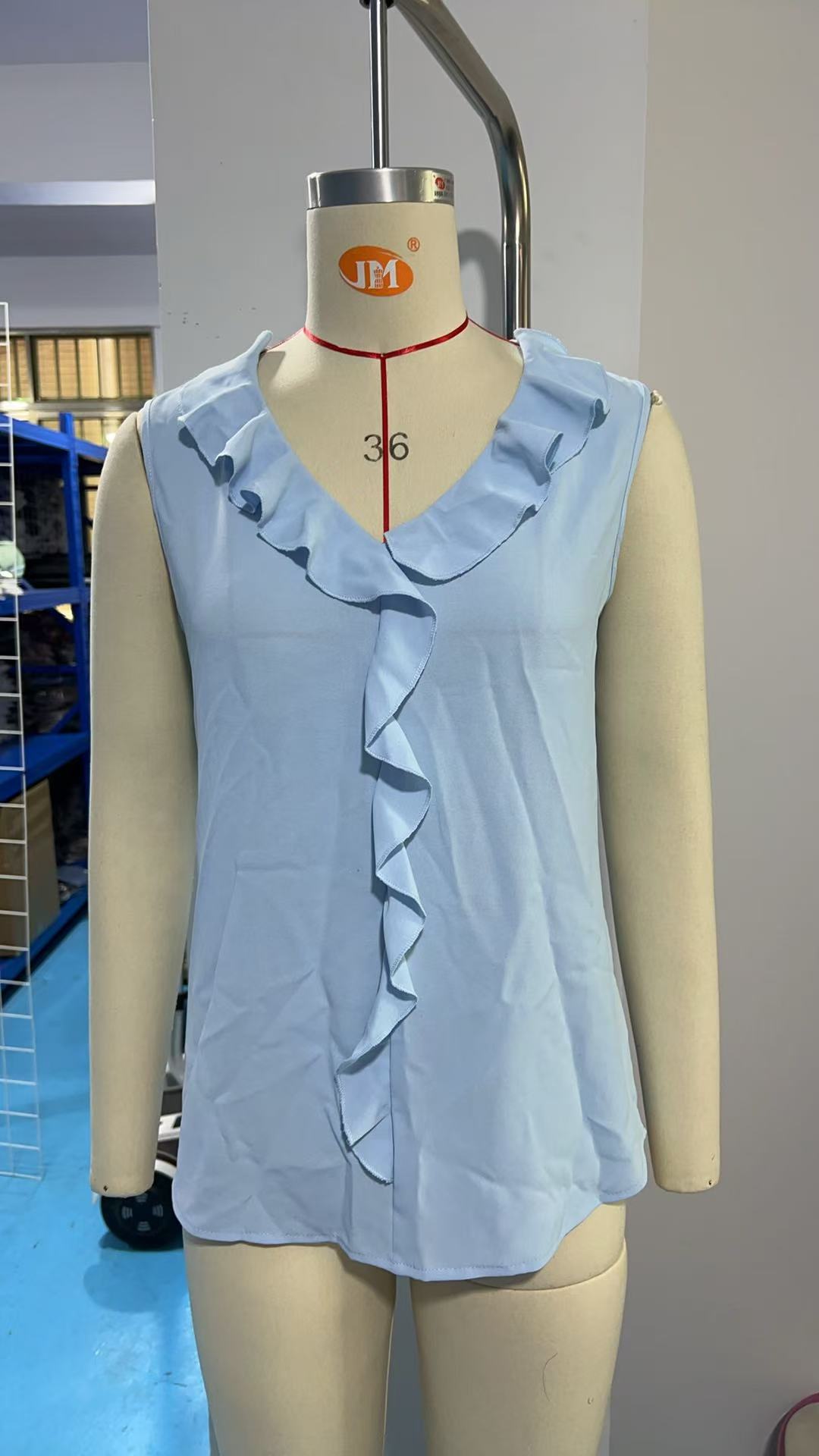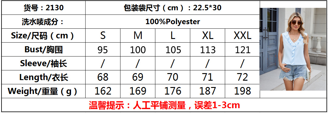 아마존 유럽과 미국 국경 무역 2025 시폰 셔츠 민소매 V 넥 주름진 느슨한 여성 정상스토어 가기
