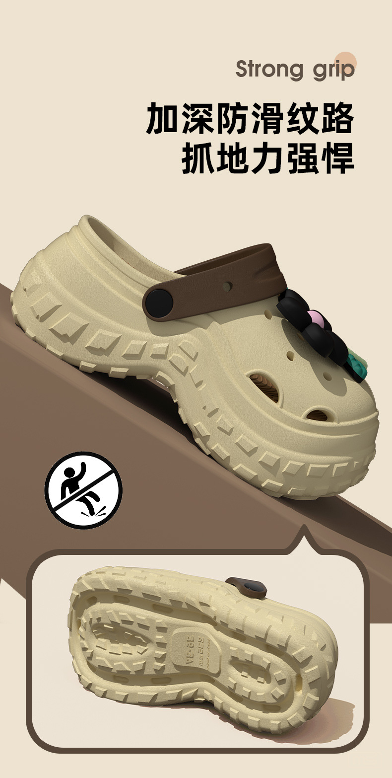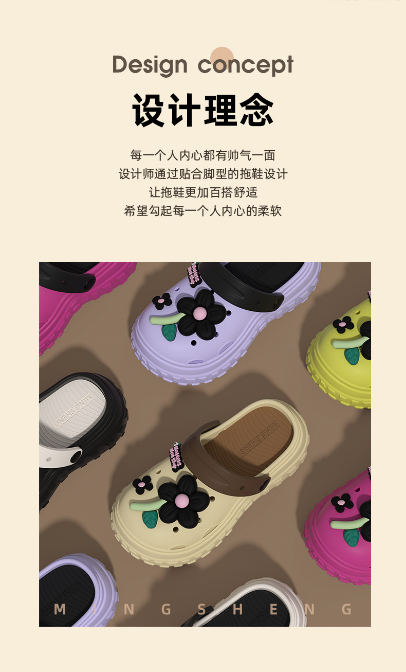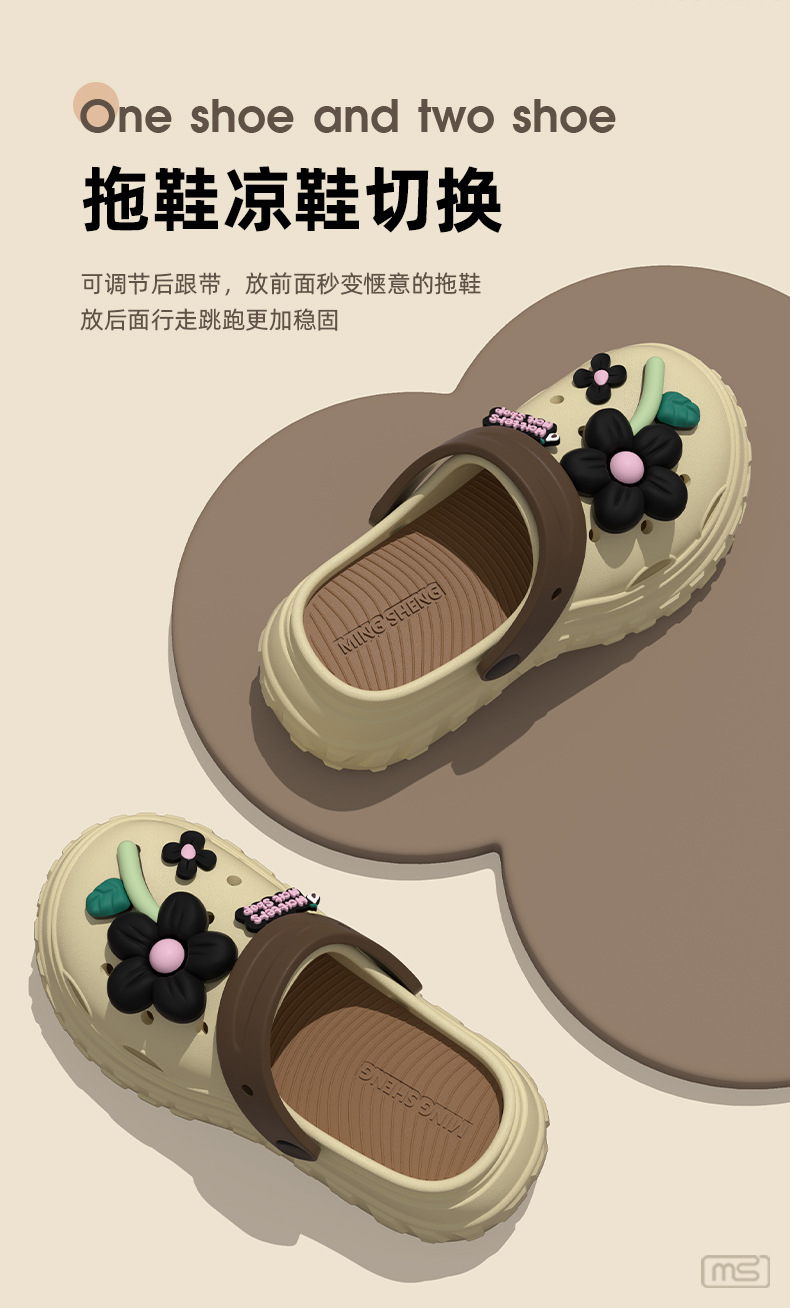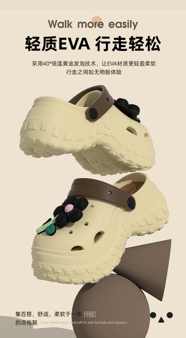 Mingsheng 한국식 2024 여름 폭발 달콤한 시원한 목가적 인 꽃 두꺼운 밑창 작은 방수 부드러운 구멍 신발스토어 가기