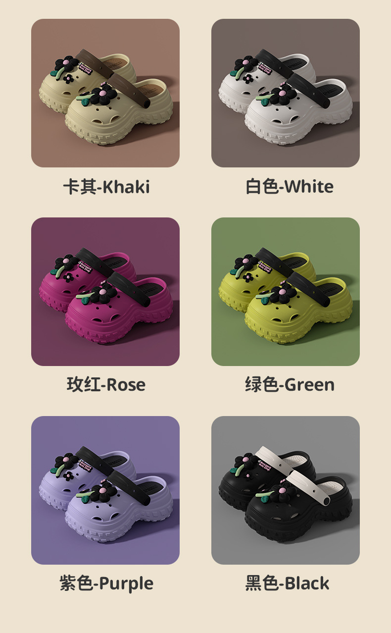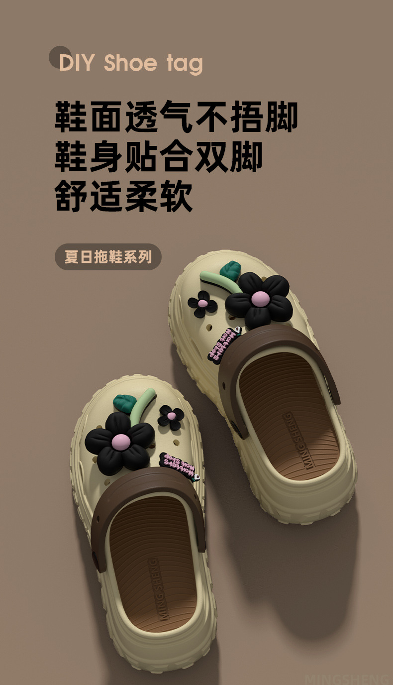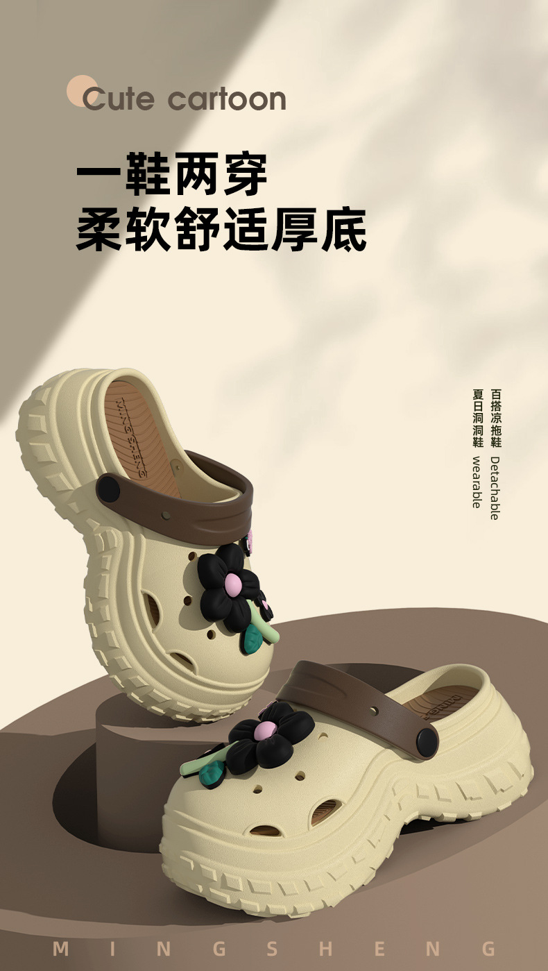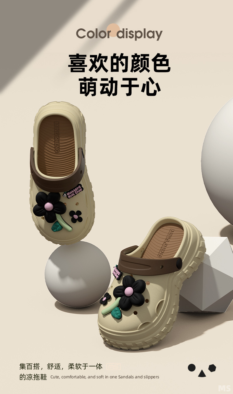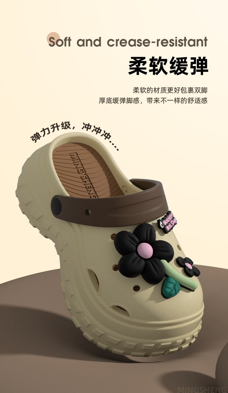 Mingsheng 한국식 2024 여름 폭발 달콤한 시원한 목가적 인 꽃 두꺼운 밑창 작은 방수 부드러운 구멍 신발