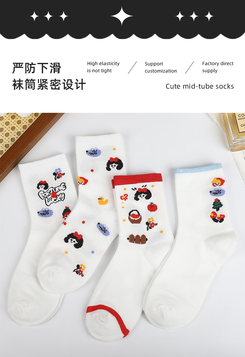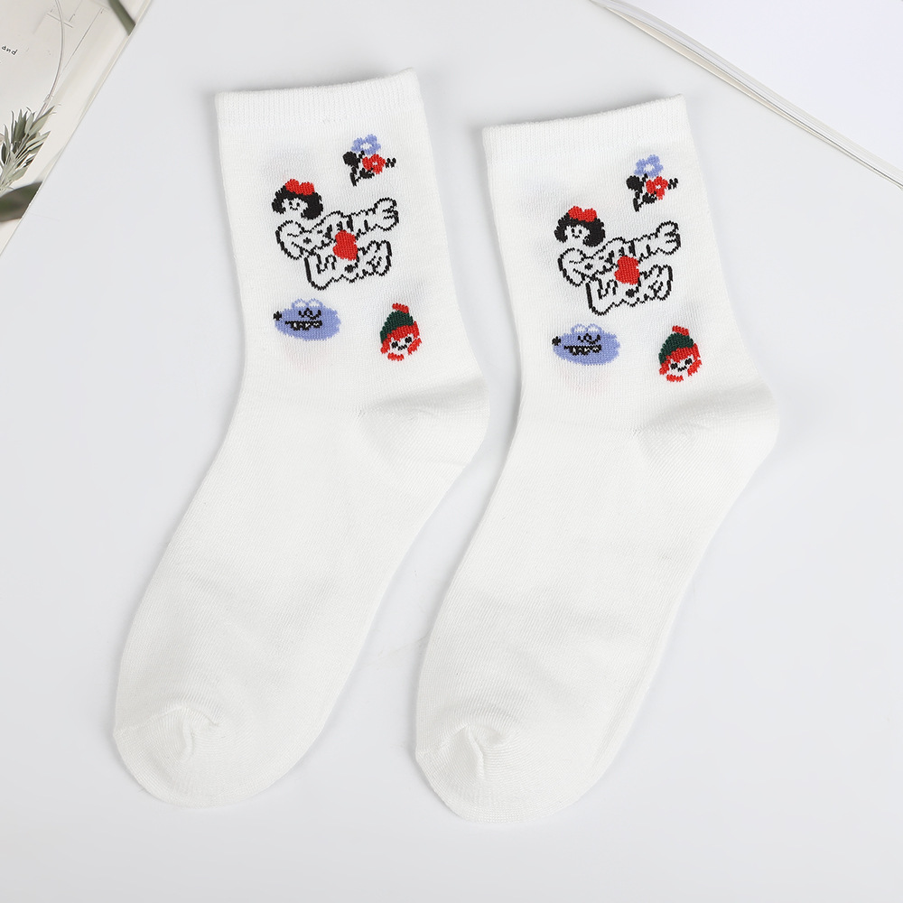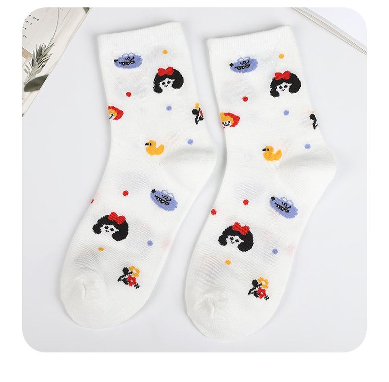 양말 여성용 동화 마을 종아리 양말 한국 귀여운 만화 패턴 달콤한 다목적 학생 동화 요소 여성용면 양말스토어 가기