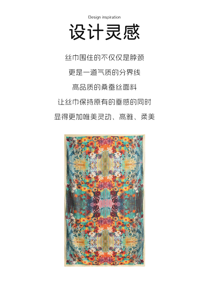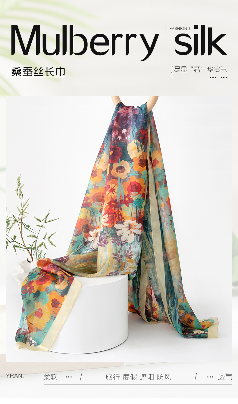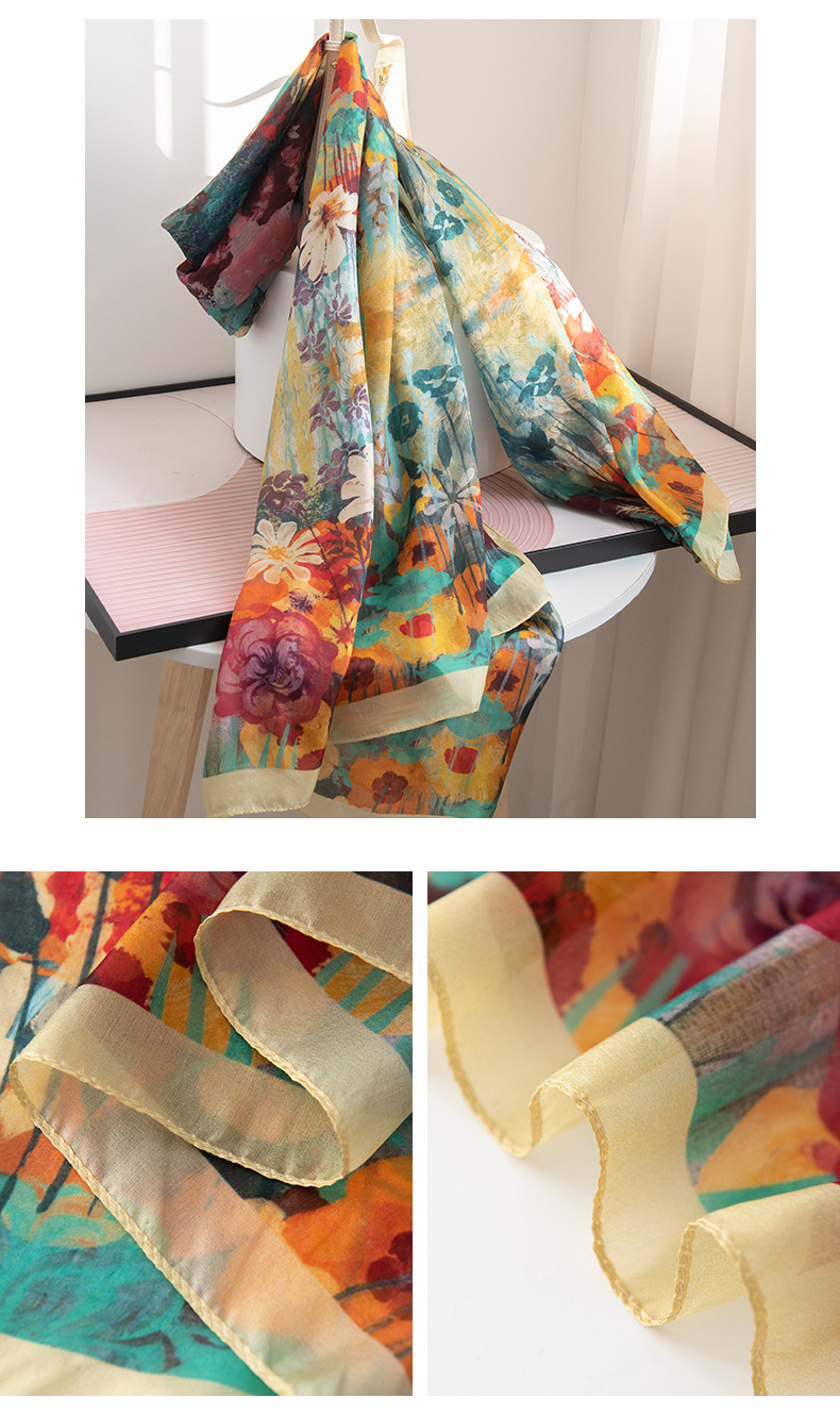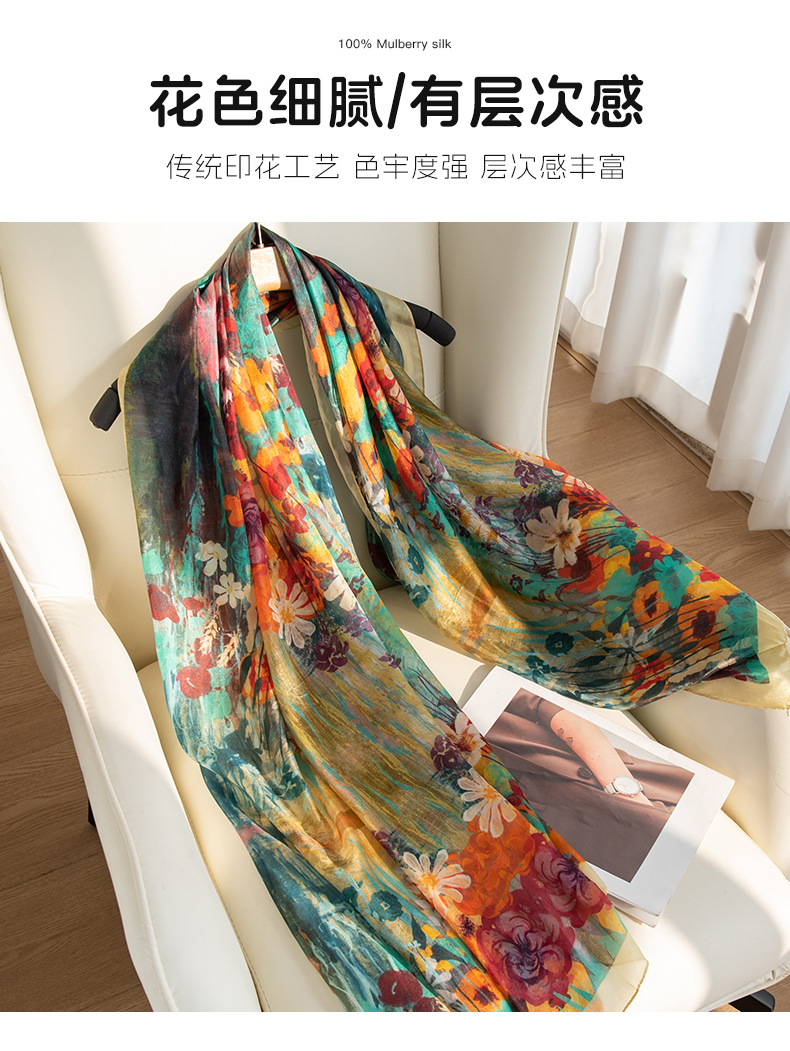 봄 실크 스카프 100% 뽕나무 실크 스카프 여성용 얇은 목도리 실크 유화 레트로 스타일 일반 크레페 새틴 고급 롱 스카프