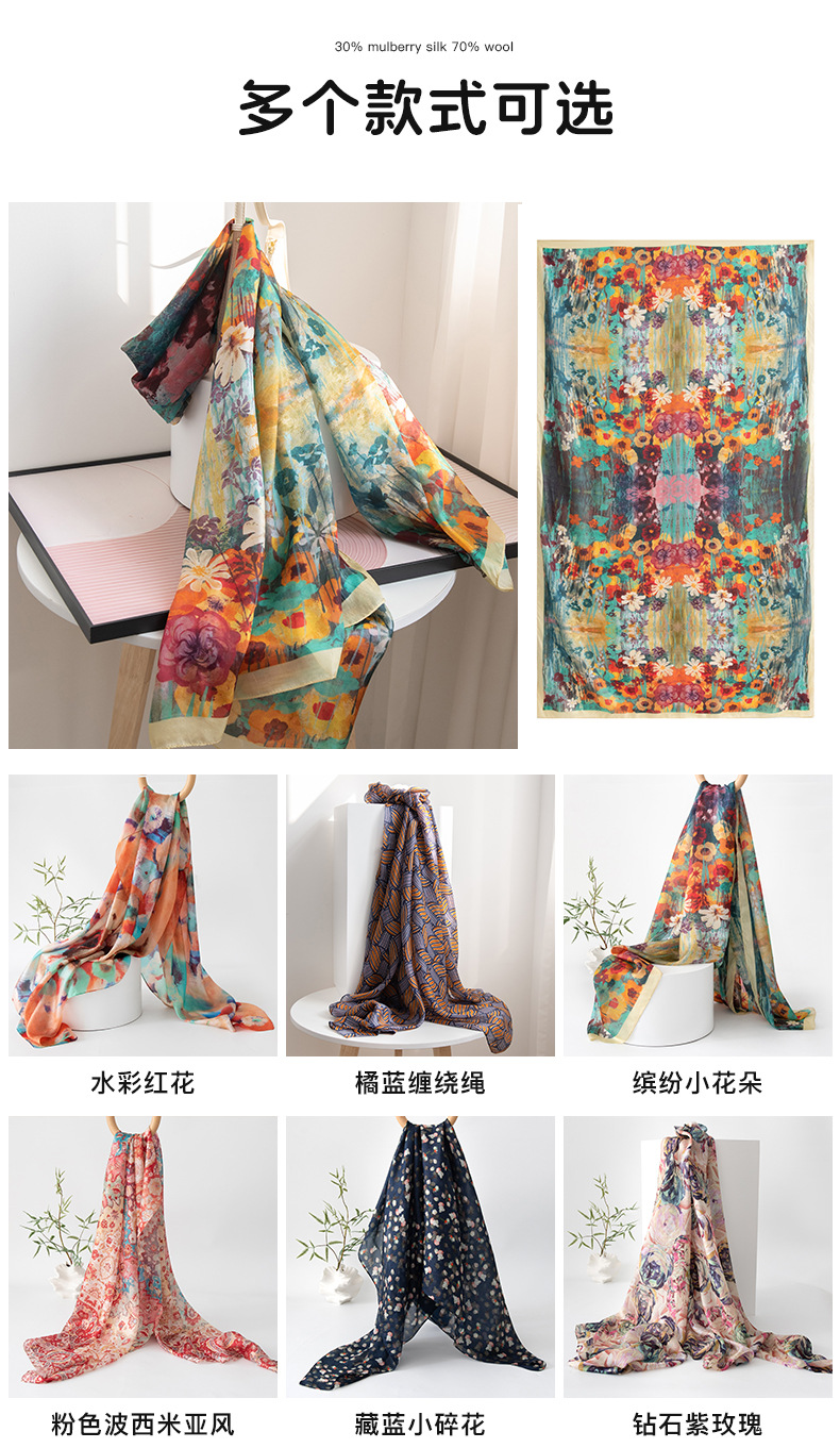 봄 실크 스카프 100% 뽕나무 실크 스카프 여성용 얇은 목도리 실크 유화 레트로 스타일 일반 크레페 새틴 고급 롱 스카프스토어 가기