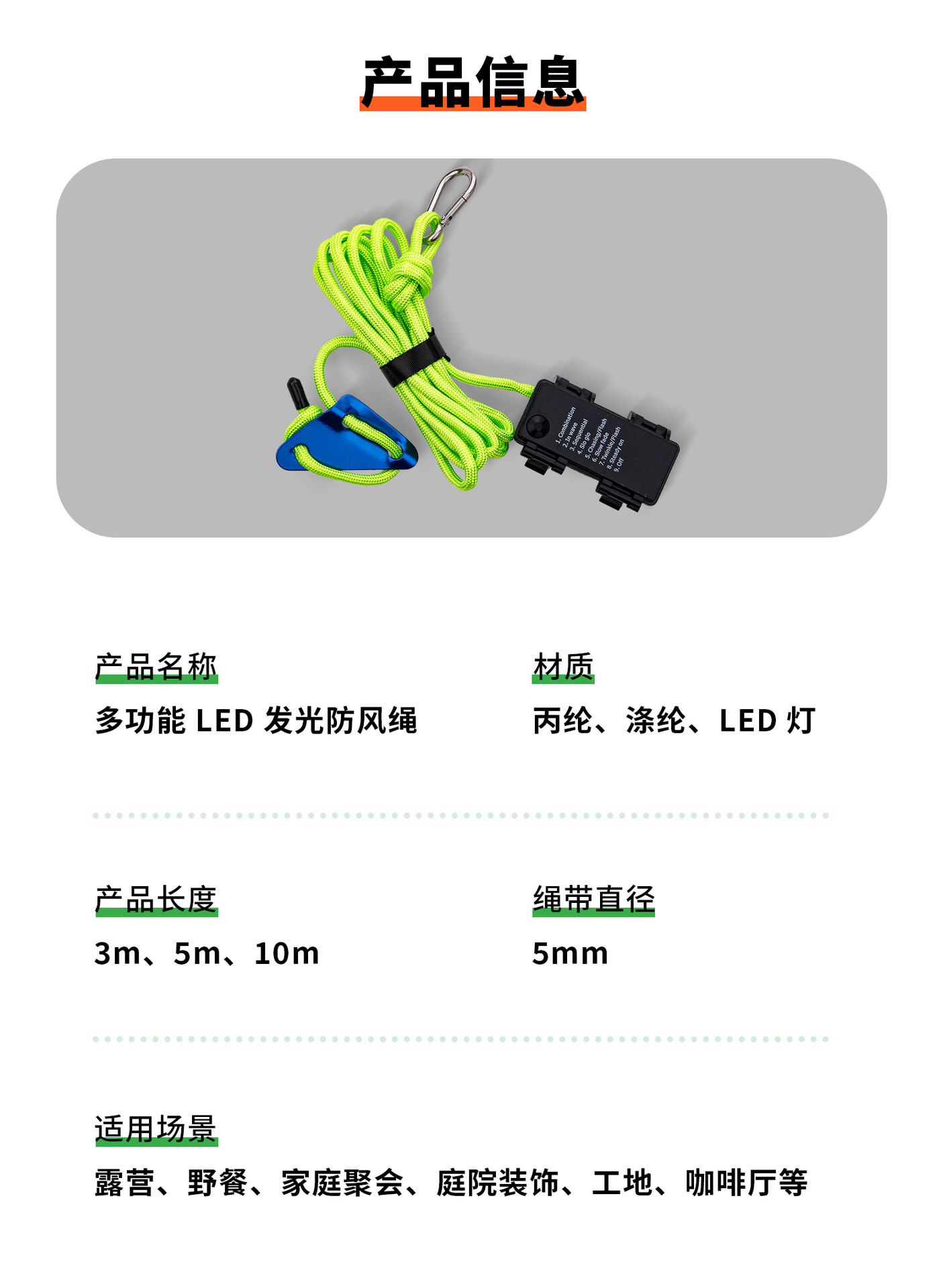 • 녹색 3M 윈드 로프 조명