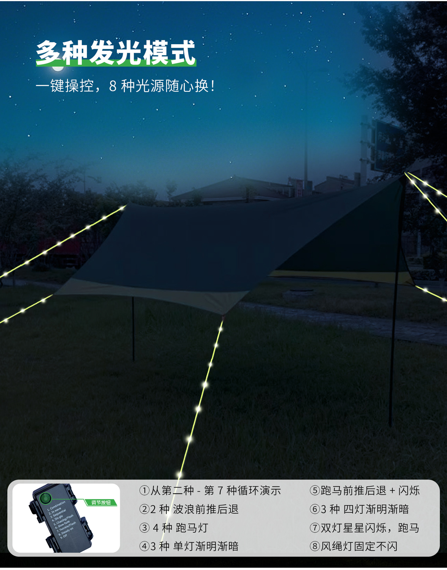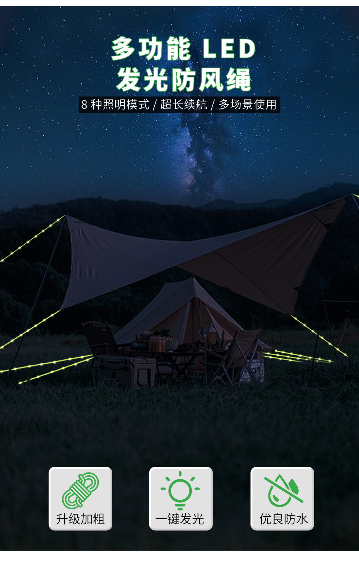 국경 간 도매 캐노피 텐트 졸라매는 끈 야외 캠핑 빛나는 바람 로프 빛 캠핑 로프 빛나는 경고 바람 로프 빛스토어 가기