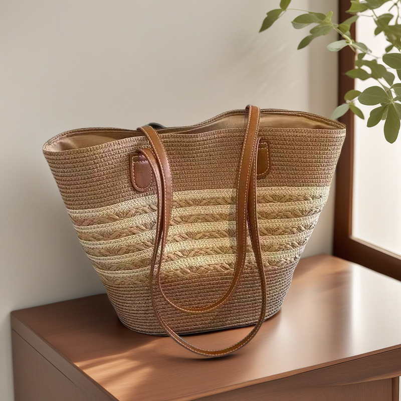스트라이프 밀짚 가방 여성 대용량 새로운 해변 휴가 해변 가방 밀짚 가방 짠 가방 통근 토트 백
