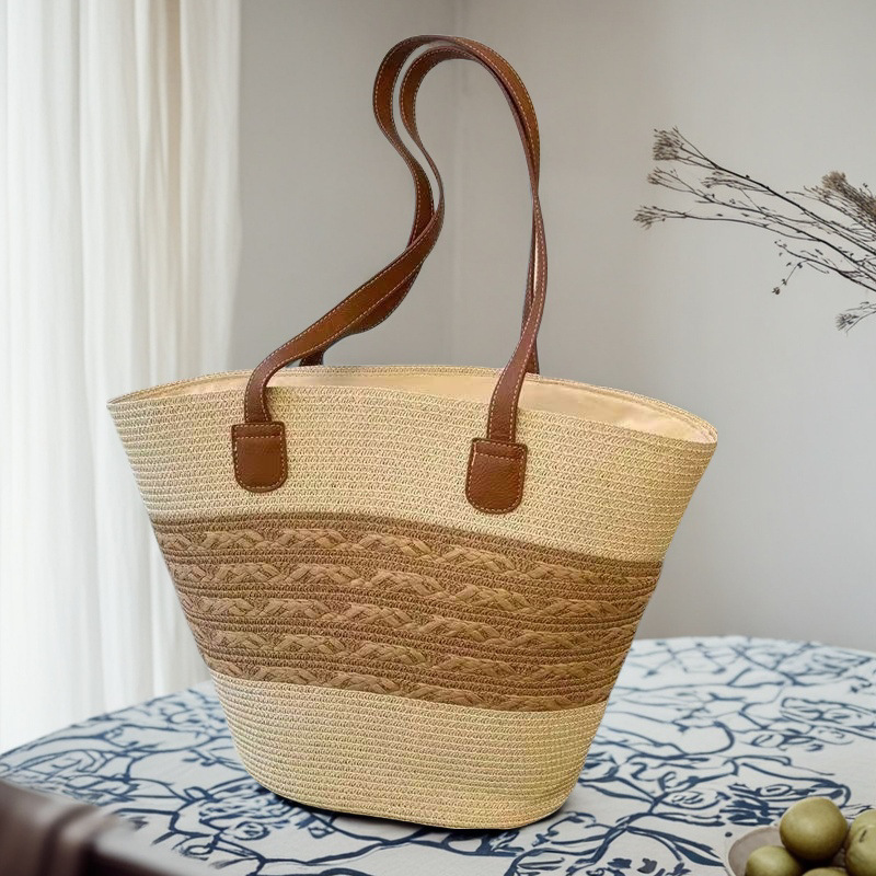 스트라이프 밀짚 가방 여성 대용량 새로운 해변 휴가 해변 가방 밀짚 가방 짠 가방 통근 토트 백스토어 가기