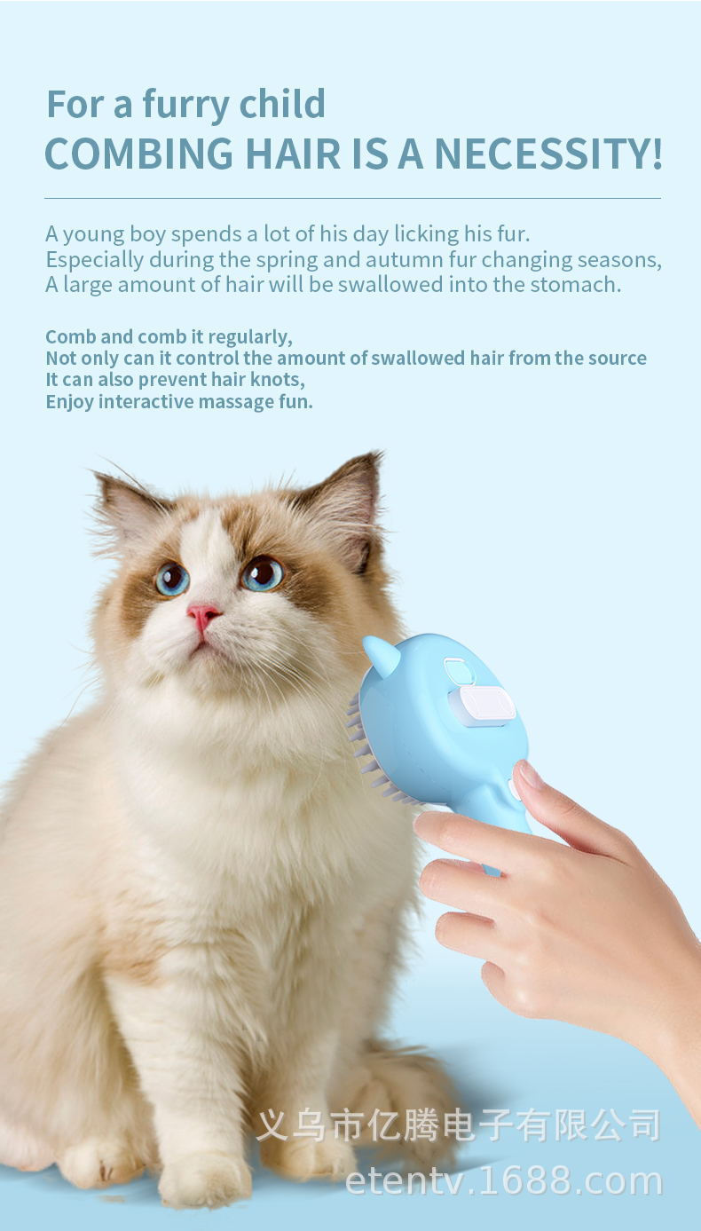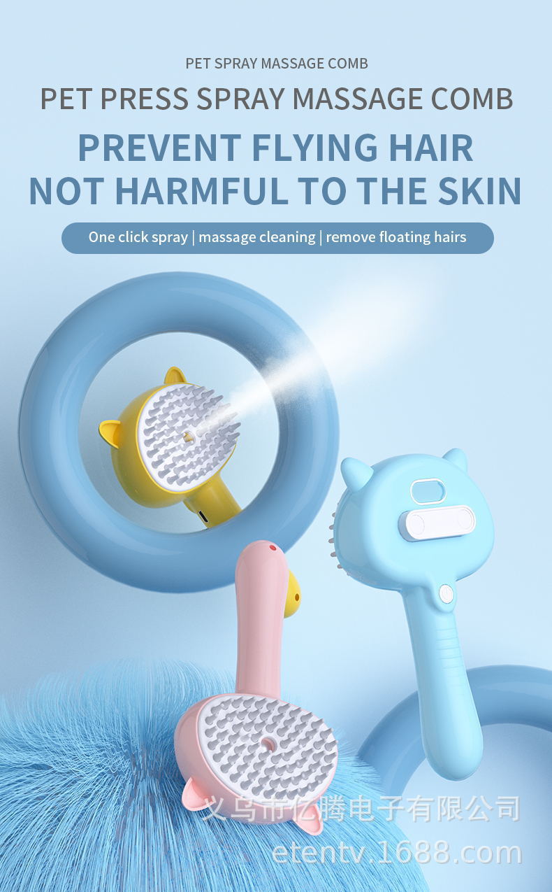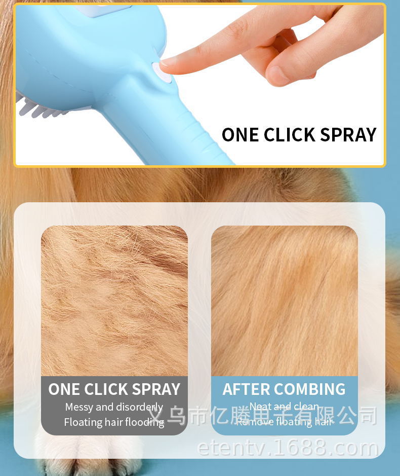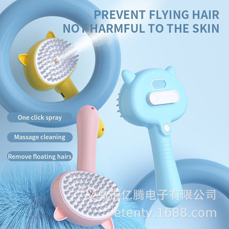 고양이와 강아지를 위한 크로스보더 애완동물 스프레이 브러싱 빗, 부동모 제거 빗, 원클릭 스프레이 마사지 및 미용 애완동물 빗스토어 가기