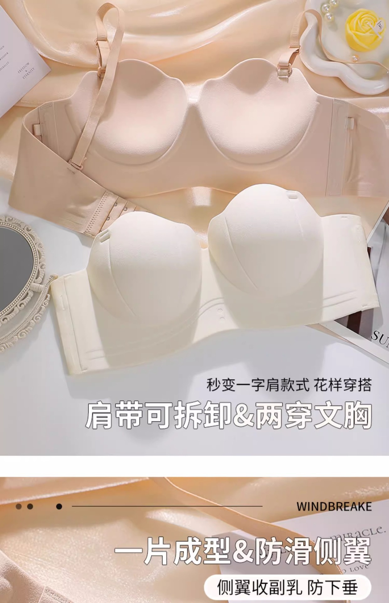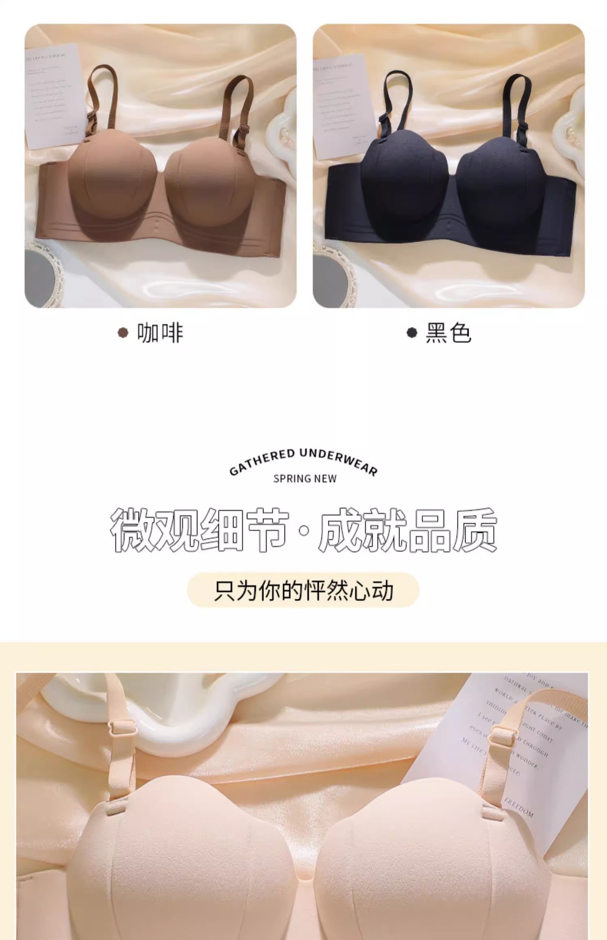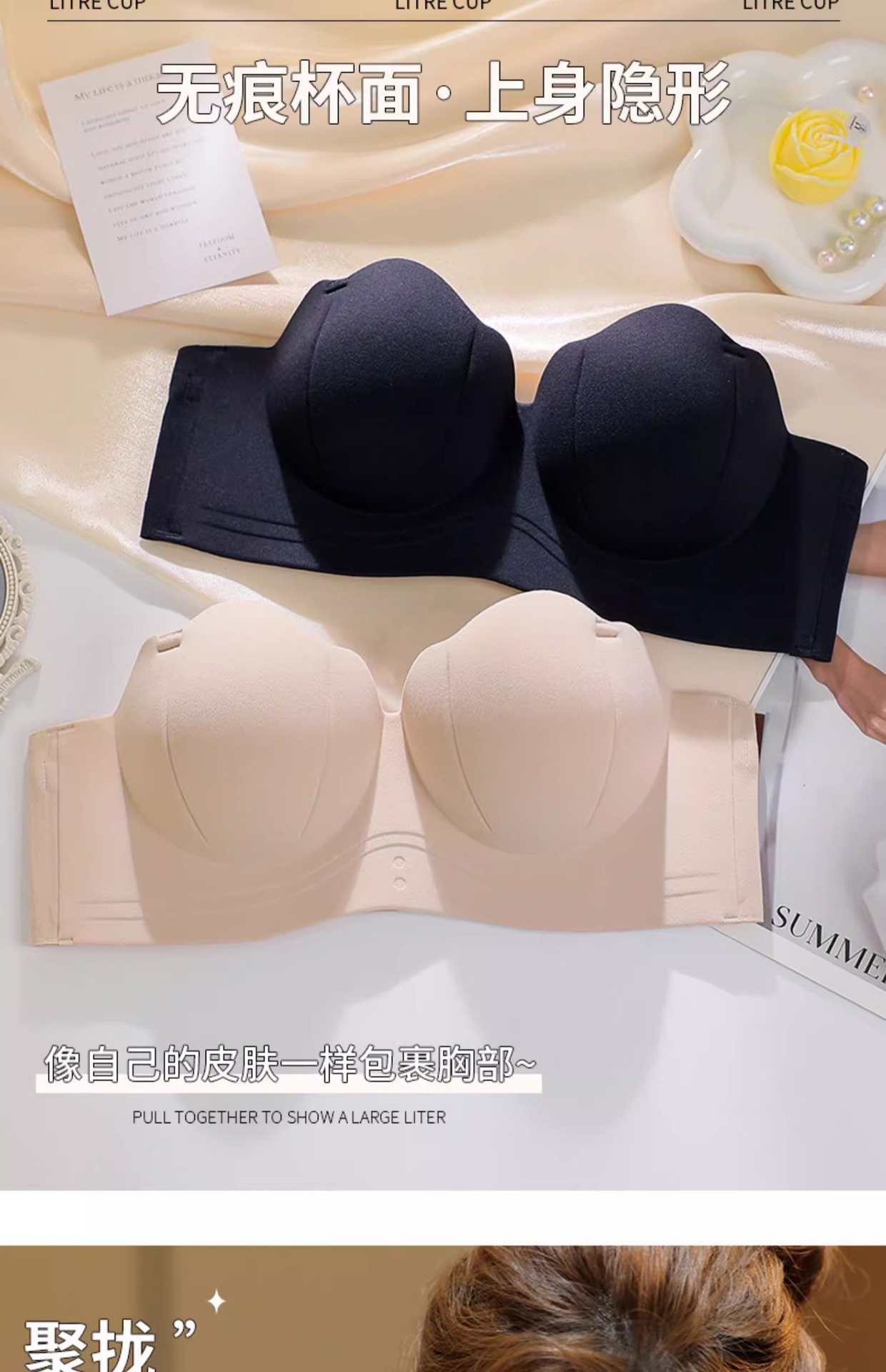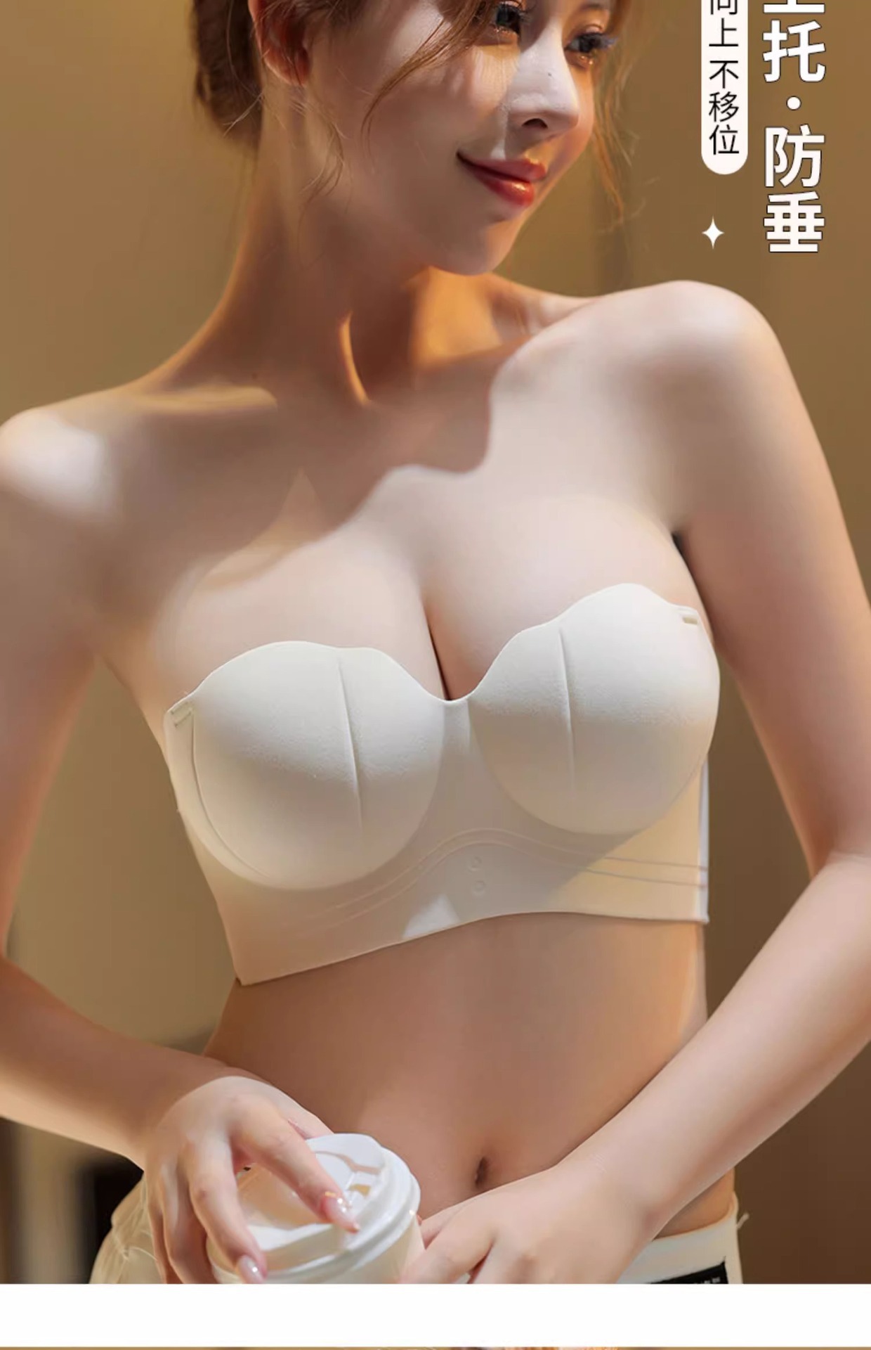 오리지널 새로운 스트랩리스 쉘 컵 스트래프리스 하프 컵 속옷 여성 게더 작은 가슴 큰 미끄럼 방지 섹시한 어깨