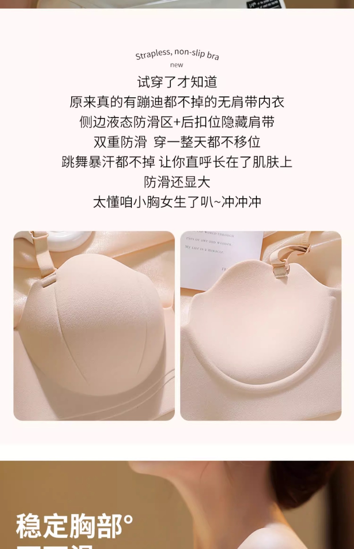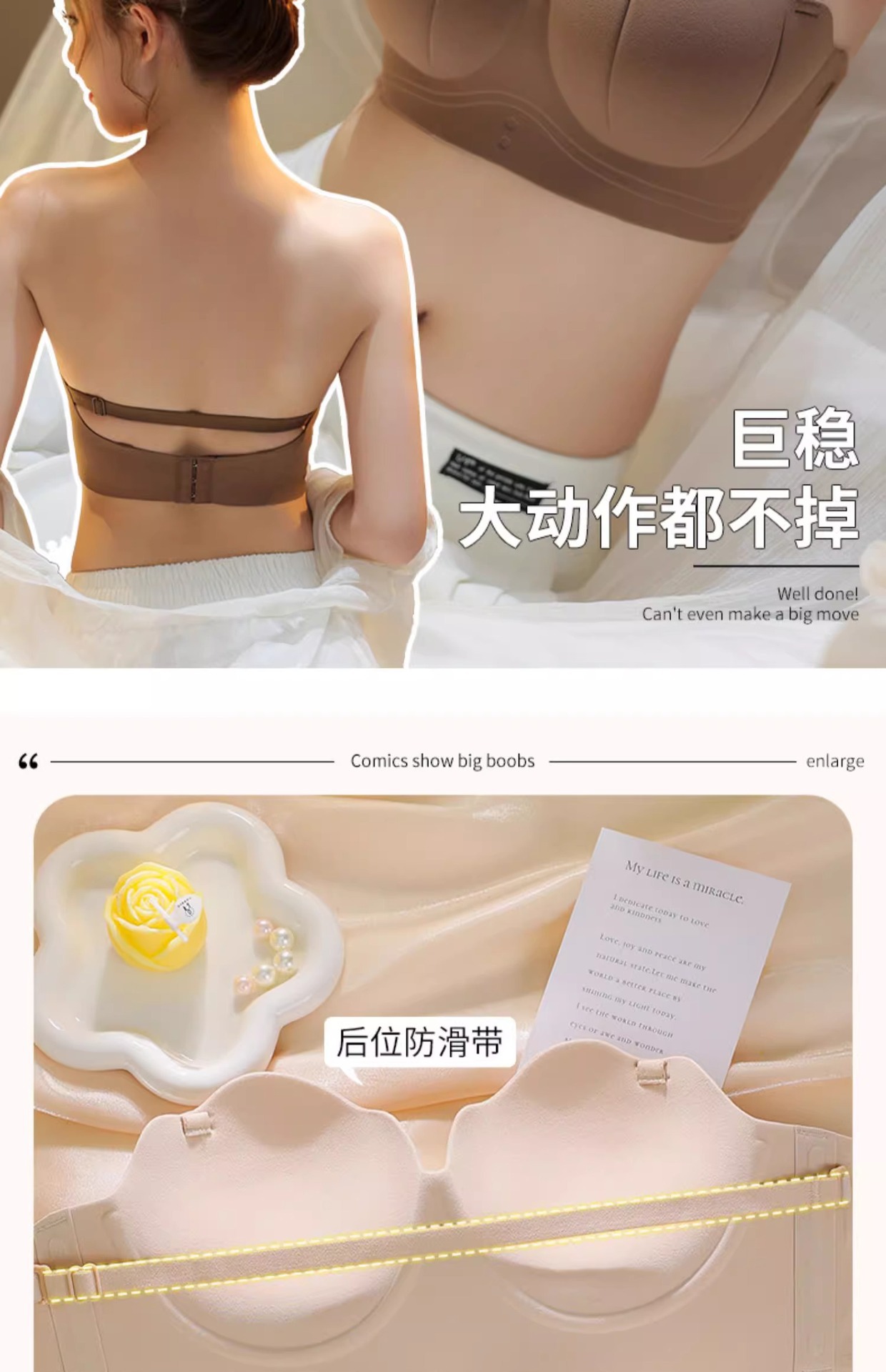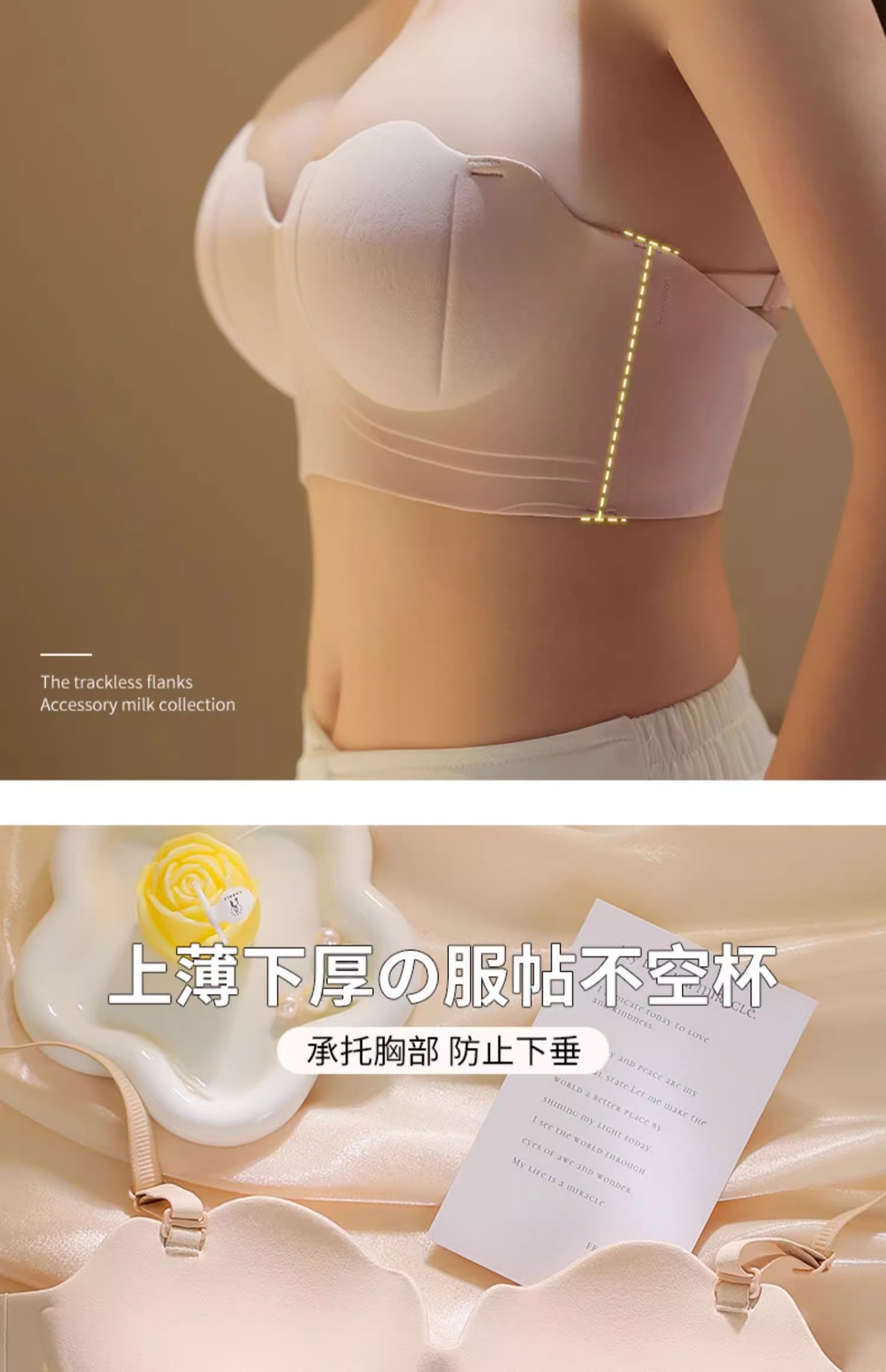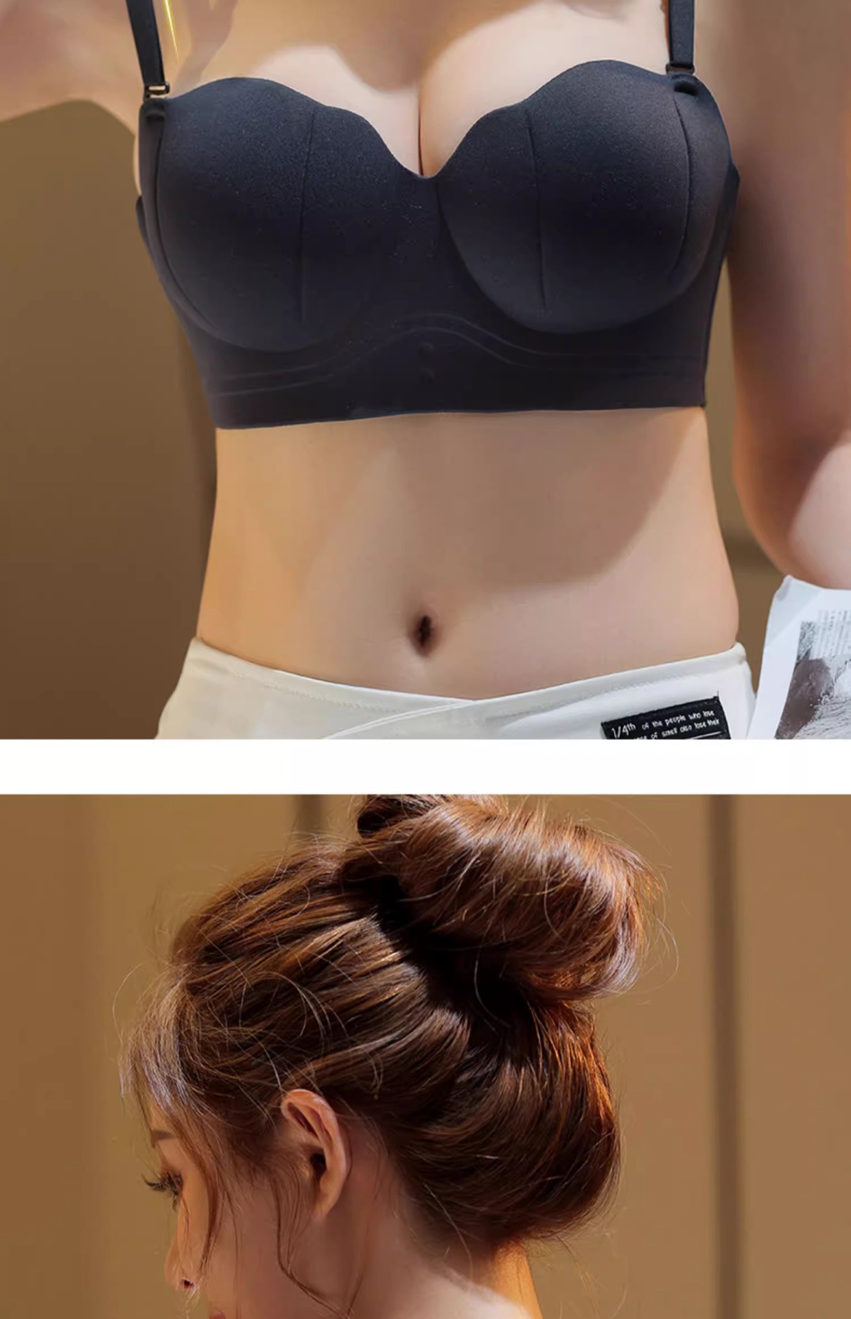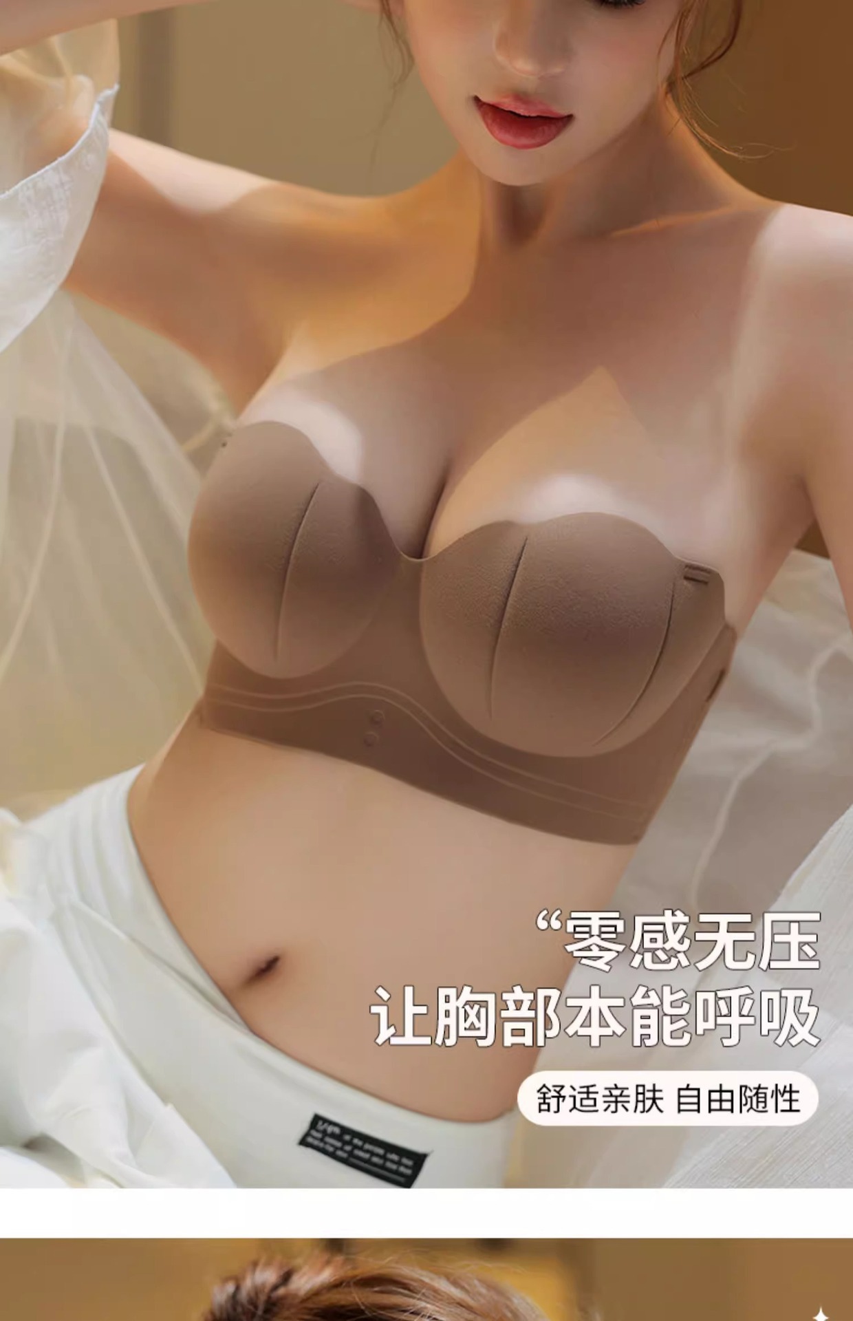 오리지널 새로운 스트랩리스 쉘 컵 스트래프리스 하프 컵 속옷 여성 게더 작은 가슴 큰 미끄럼 방지 섹시한 어깨