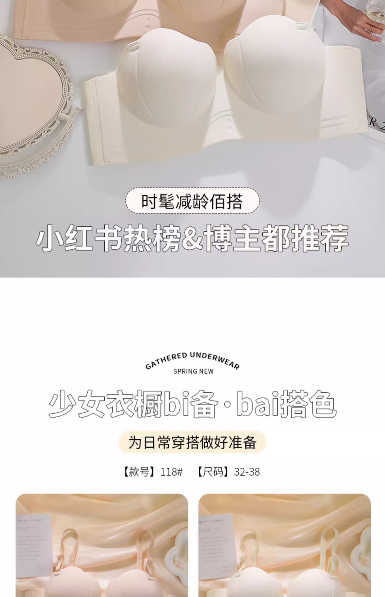 오리지널 새로운 스트랩리스 쉘 컵 스트래프리스 하프 컵 속옷 여성 게더 작은 가슴 큰 미끄럼 방지 섹시한 어깨스토어 가기