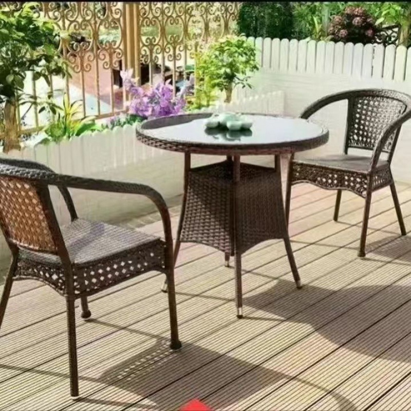 야외 테이블과 의자 안뜰 발코니 레저 등나무 의자 3 피스 세트 테라스 야외 등나무 의자 작은 커피 테이블 세트스토어 가기