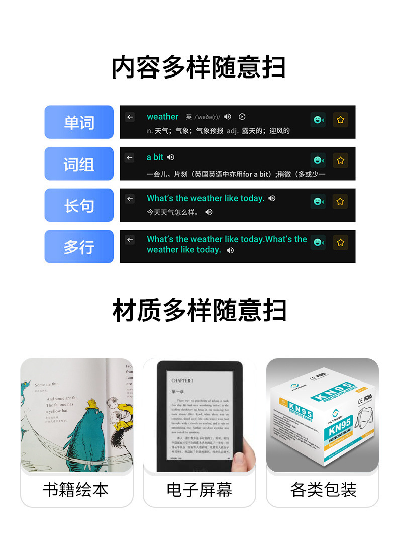 오디오 독서 펜 AI 스캔 영어 사전 펜 초등학교 중학교 고등학교 영어 학습 기계 교육 장난감 유물