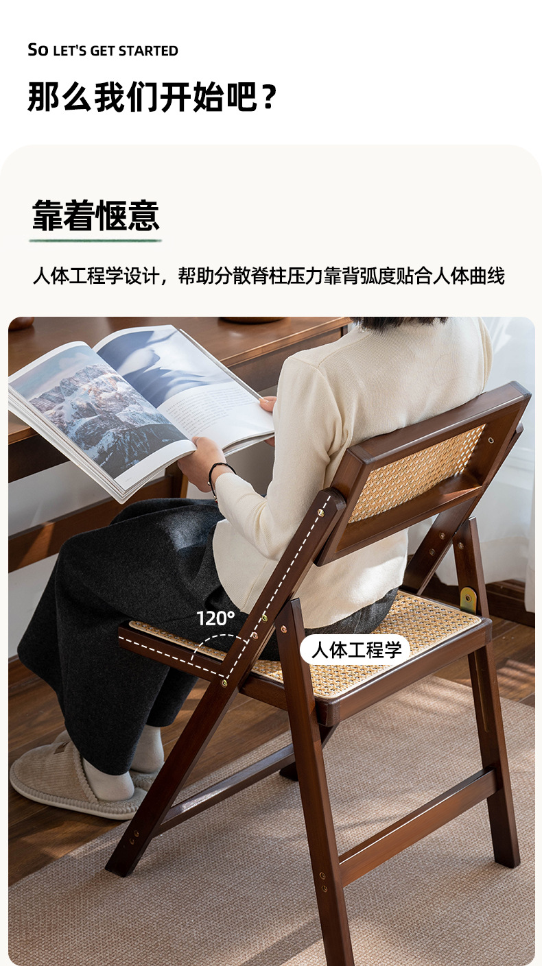 접이식 의자 등나무 식사 의자 홈 거실 통기성 멋진 의자 사무실 의자 빈티지 발코니 레저 미끄럼 방지 등받이 의자스토어 가기