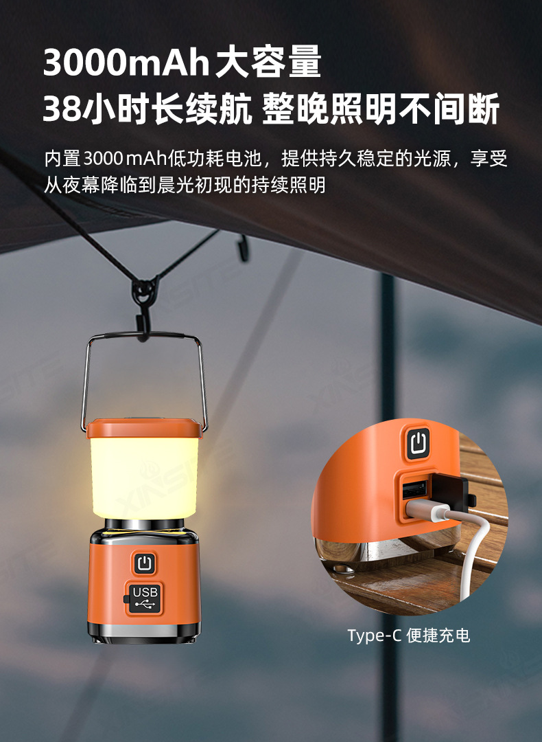 • 캠핑 라이트(500LM+3000mAh) 오렌지