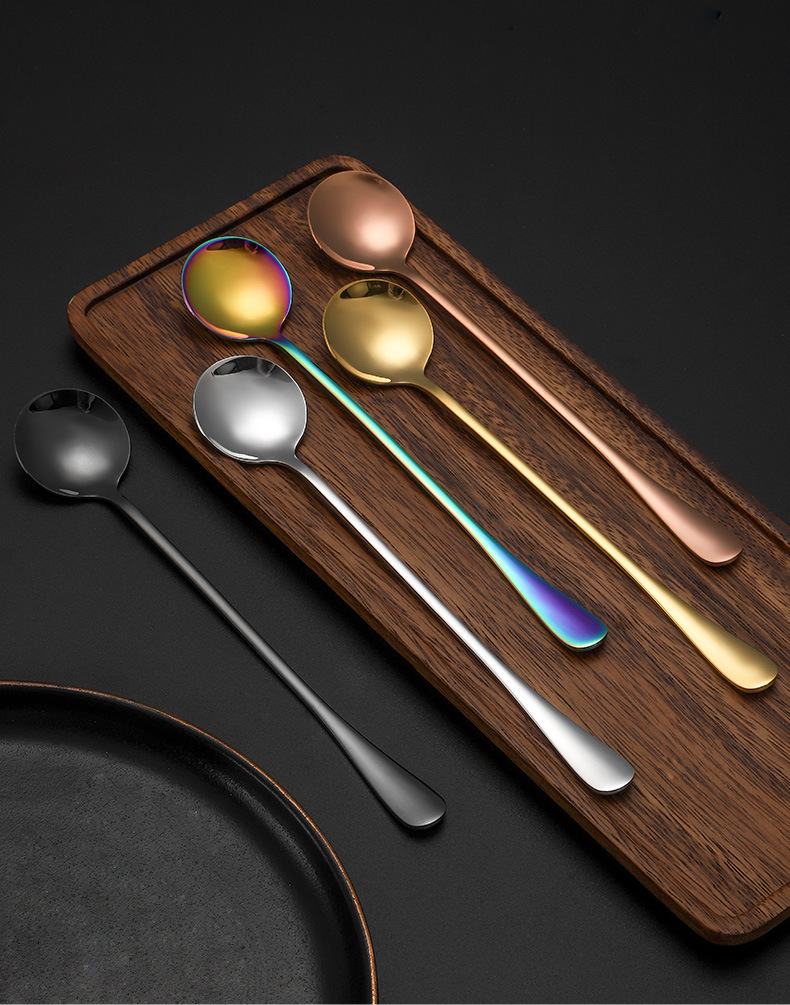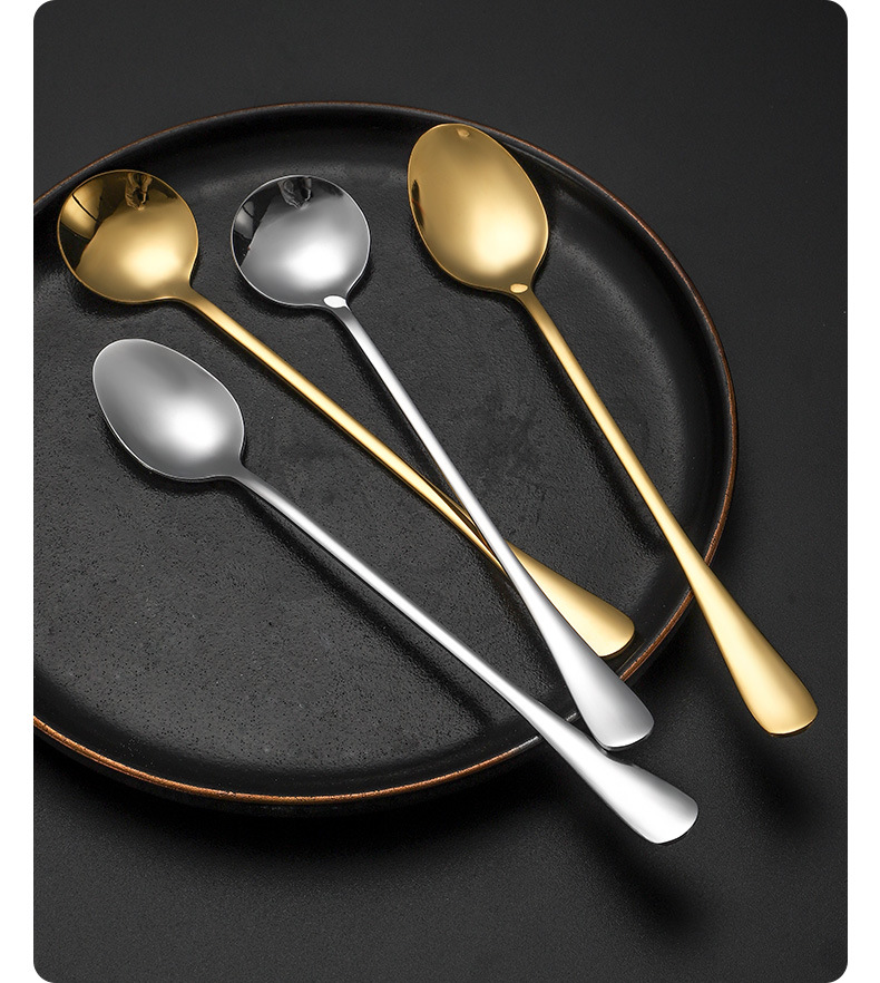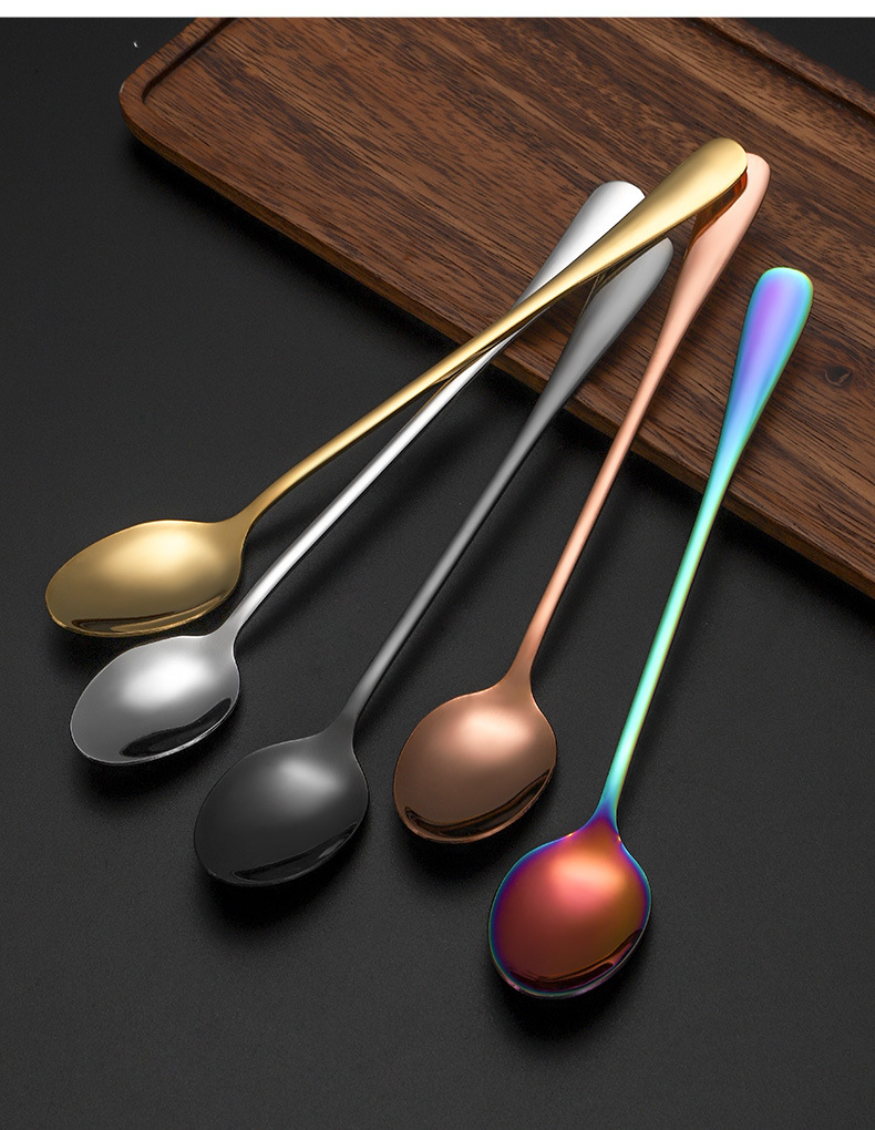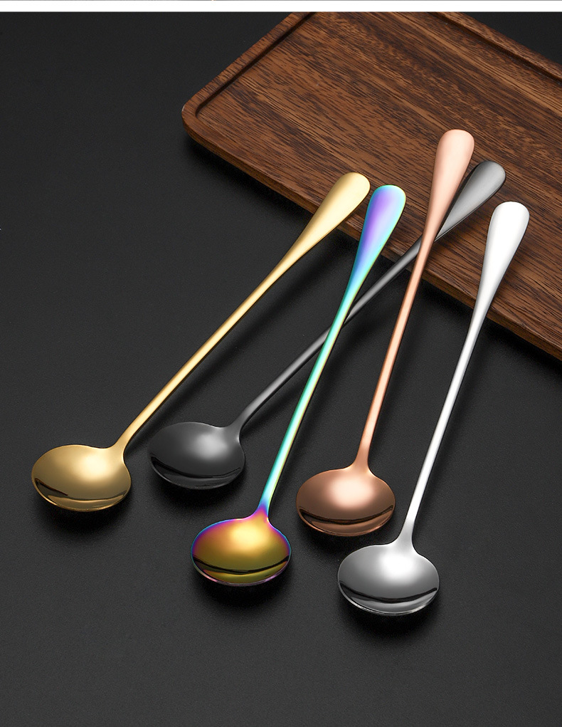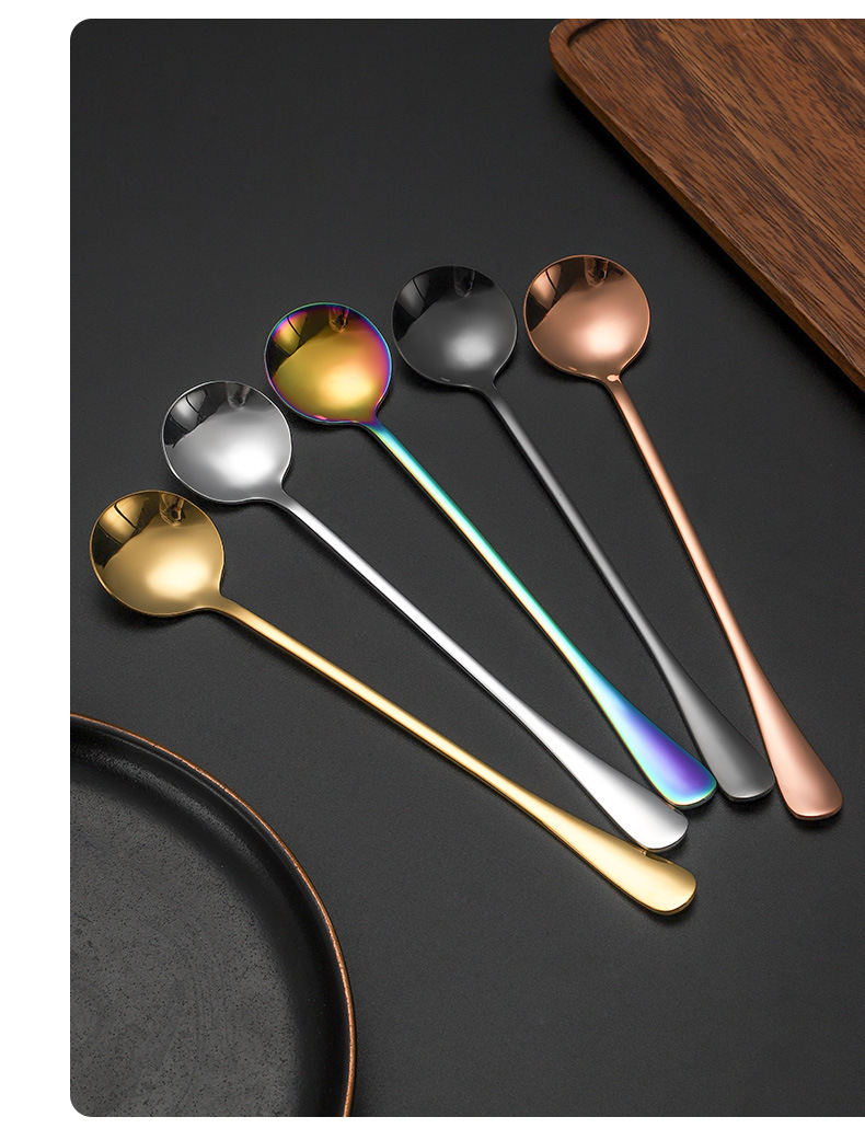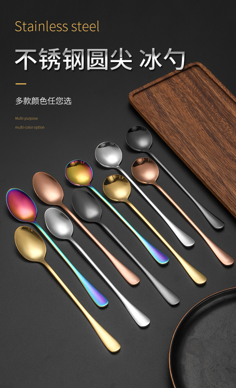 304 스테인리스 아이스크림 스푼 1010 롱 핸들 크로스보더 아이스크림 라운드 스푼 믹싱 스푼 디저트 아이스크림 케이크 로즈 골드